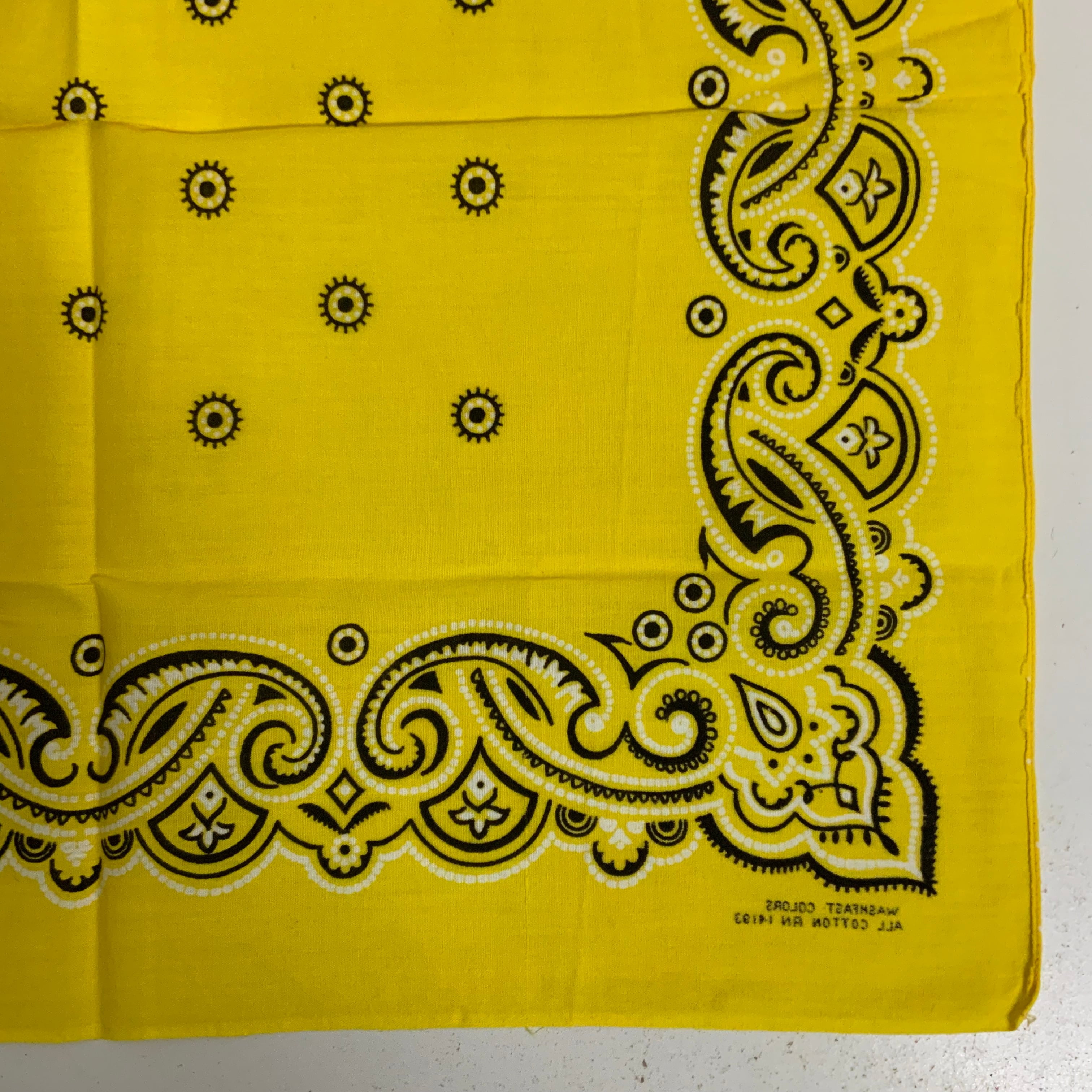 60s WASHFAST COLORS RN 14193ライトイエローバンダナユーズドです。f251010001