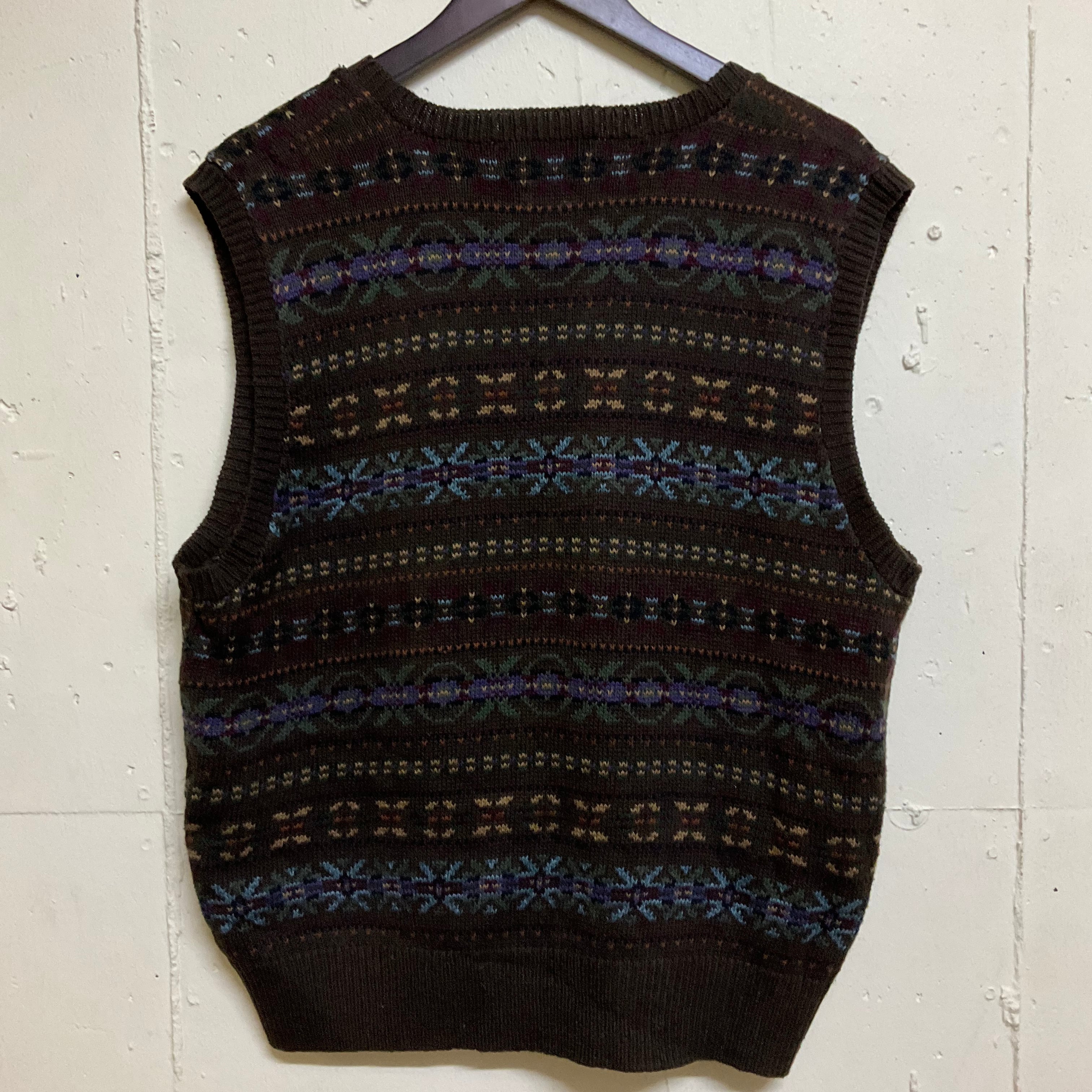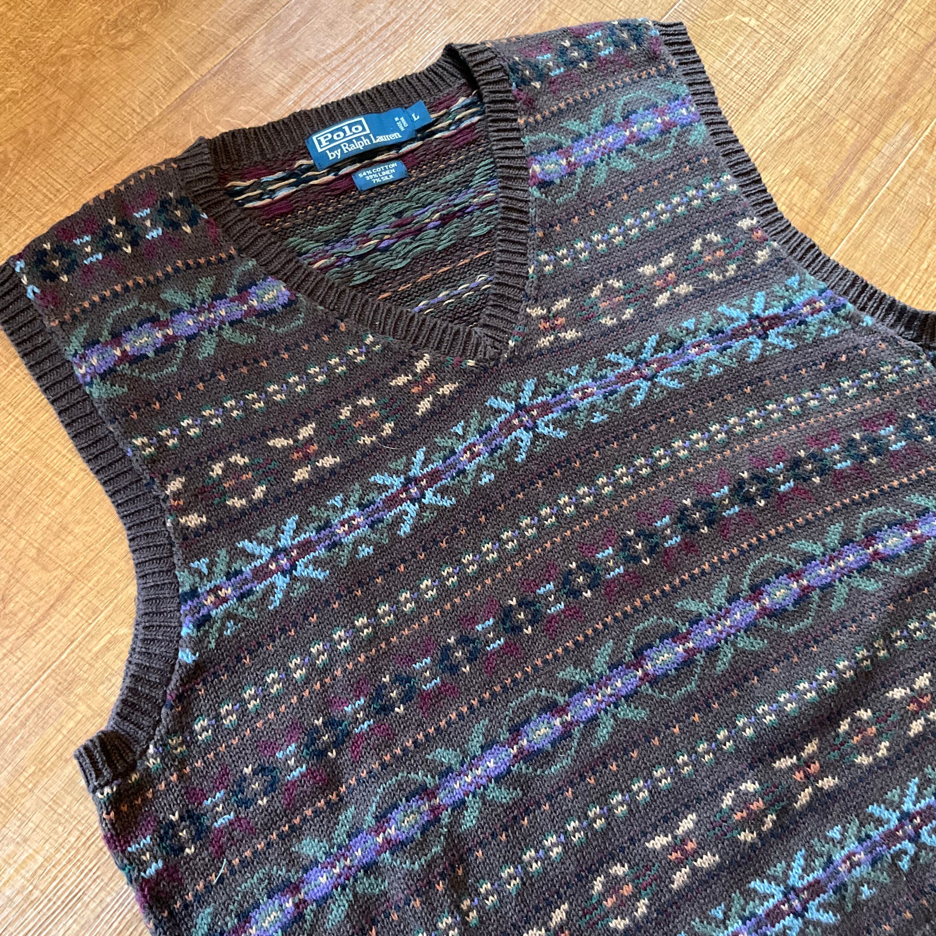 Polo by Ralph Lauren ポロバイラルフローレン フェアアイル柄 Vネック ニットベスト メンズL 古着 オールドラルフローレン シルク リネン 【f231002003】