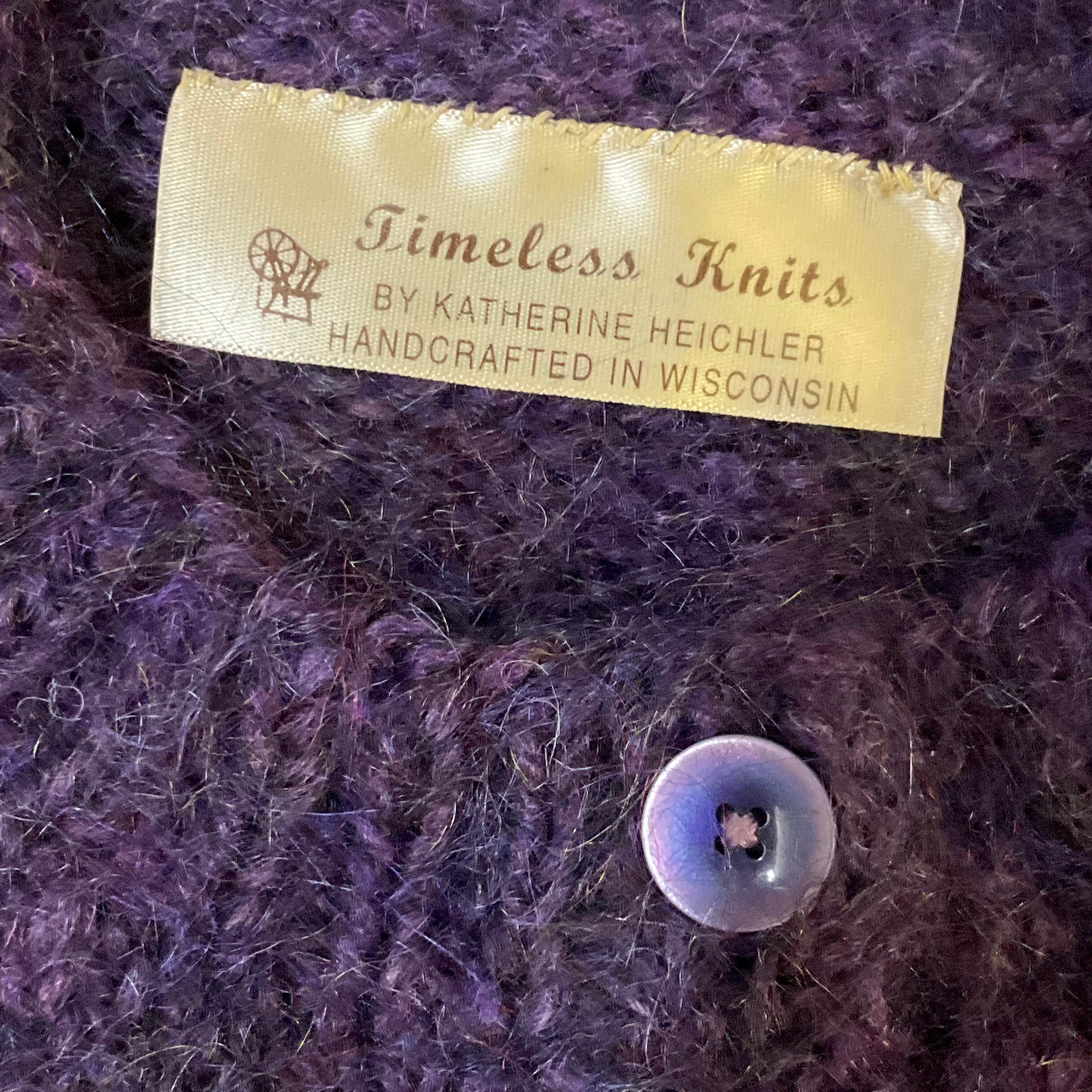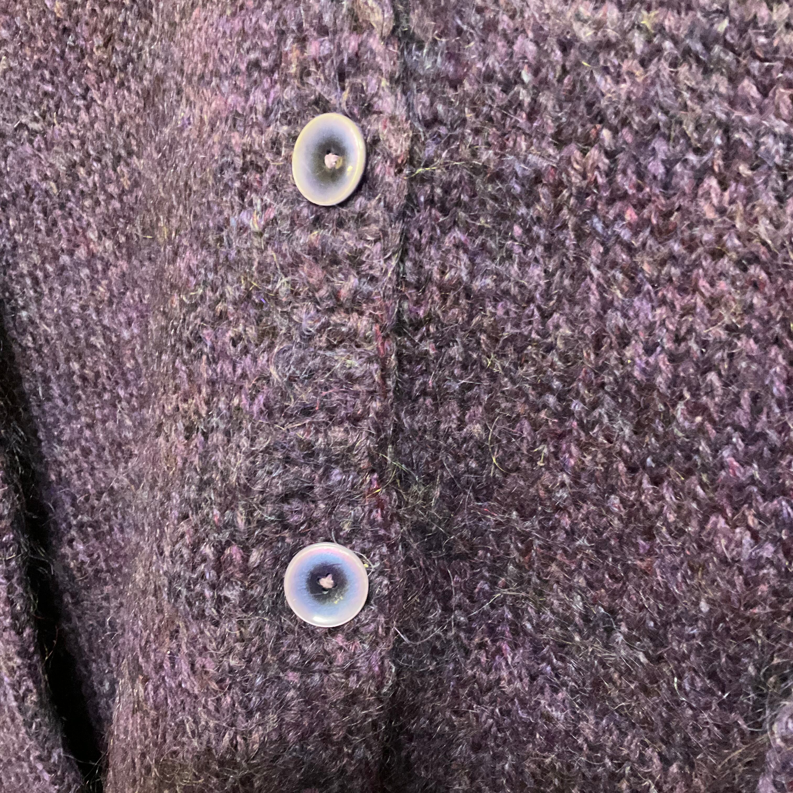 USA製 ハンドクラフト ハンドニット モヘア×ウール カーディガン 紫 パープル 古着 【f231002007】