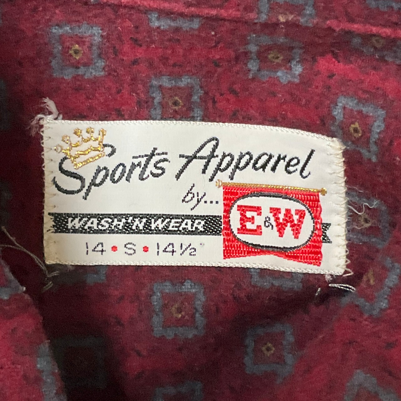 E&W Sports Apparel 60年代 60s 小紋柄 デッドストック 総柄 B.D. プリントネルシャツ 長袖シャツ レッド 赤 古着 ヴィンテージ ビンテージ ボタンダウン【f231006005】