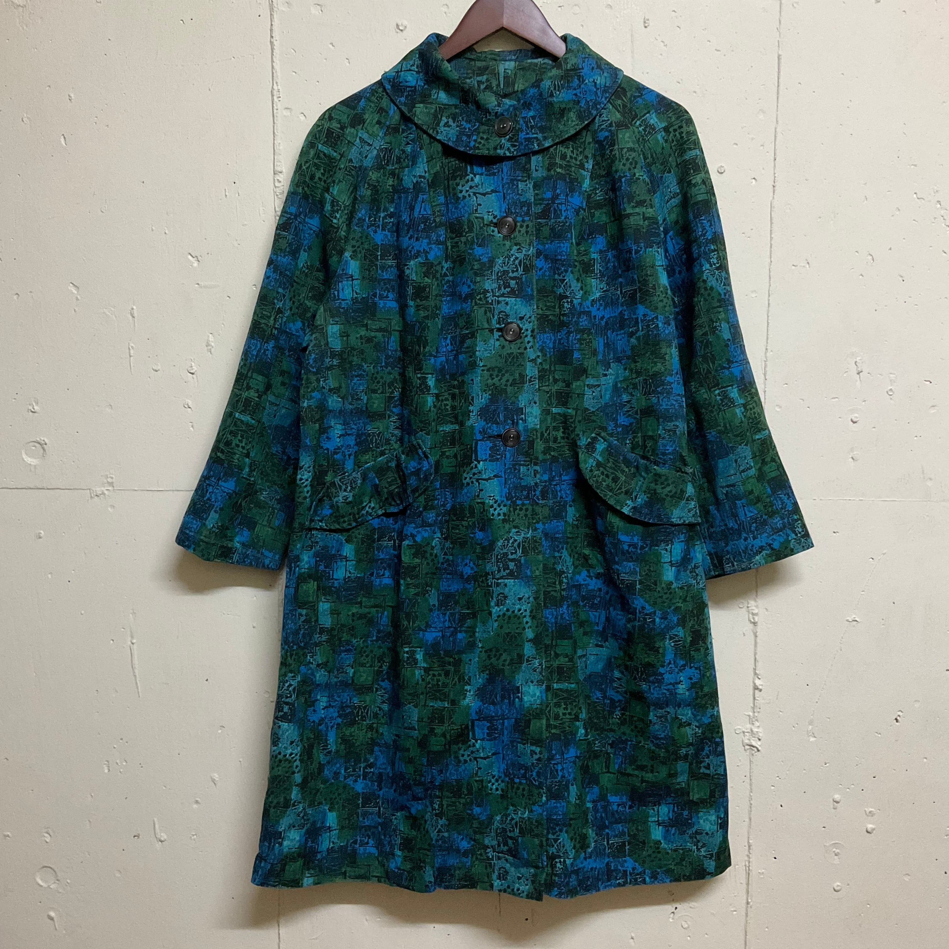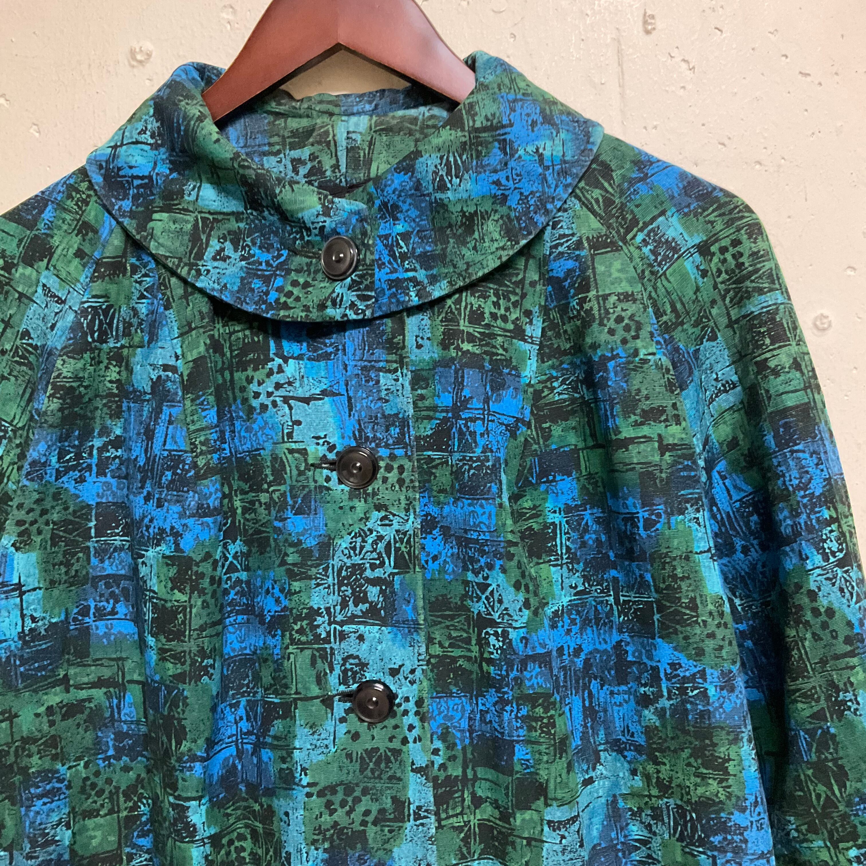 USA製 60年代 60s 総柄 コートレディースL相当 古着 ヴィンテージ ビンテージ グリーン×ブルー系【f231011013】