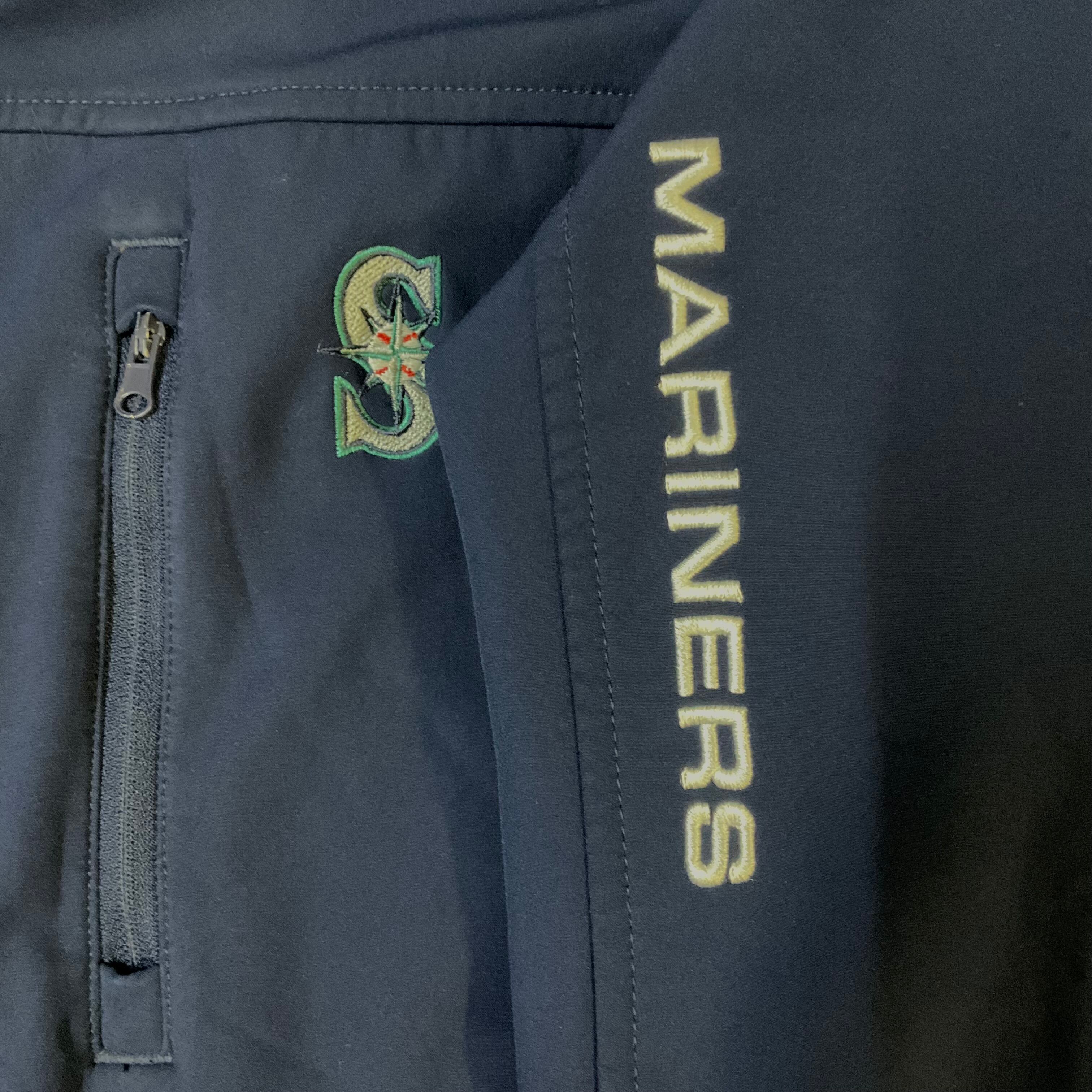 majestic マジェスティック シアトル・マリナーズ ソフトシェルジャケット メンズM 古着 ネイビー 紺 Seattle Mariners チームロゴ 刺繍【f231011022】
