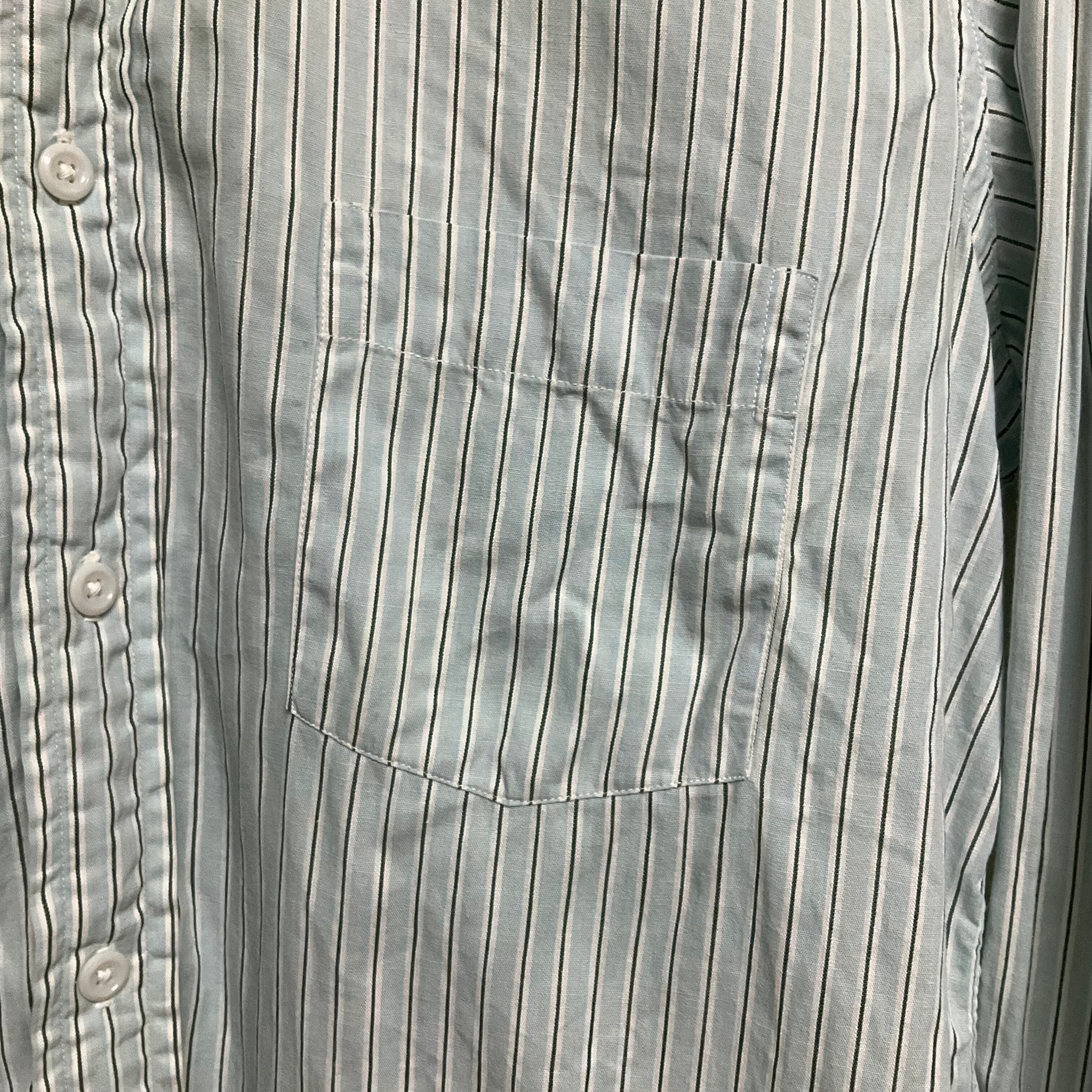 40〜50年代 40s 50s ストライプ マチ付き ステンシル 長袖シャツ 水色 ライトブルー 古着 メンズL相当 ヴィンテージ ビンテージ【f231013006】