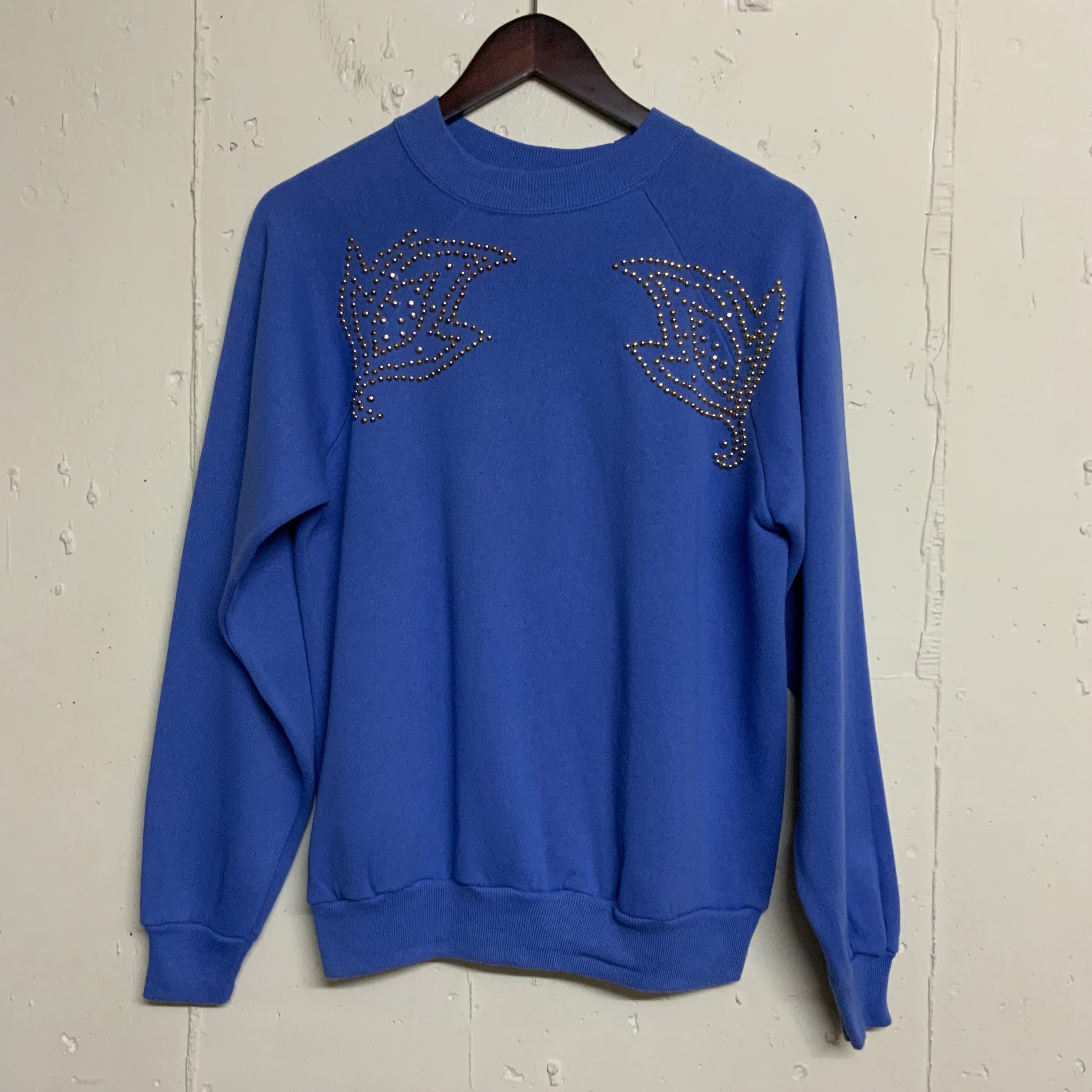 Hanes HerWay ヘインズ スタッズ スウェット トレーナー ブルー 青 古着 レディースM 【f231013021】