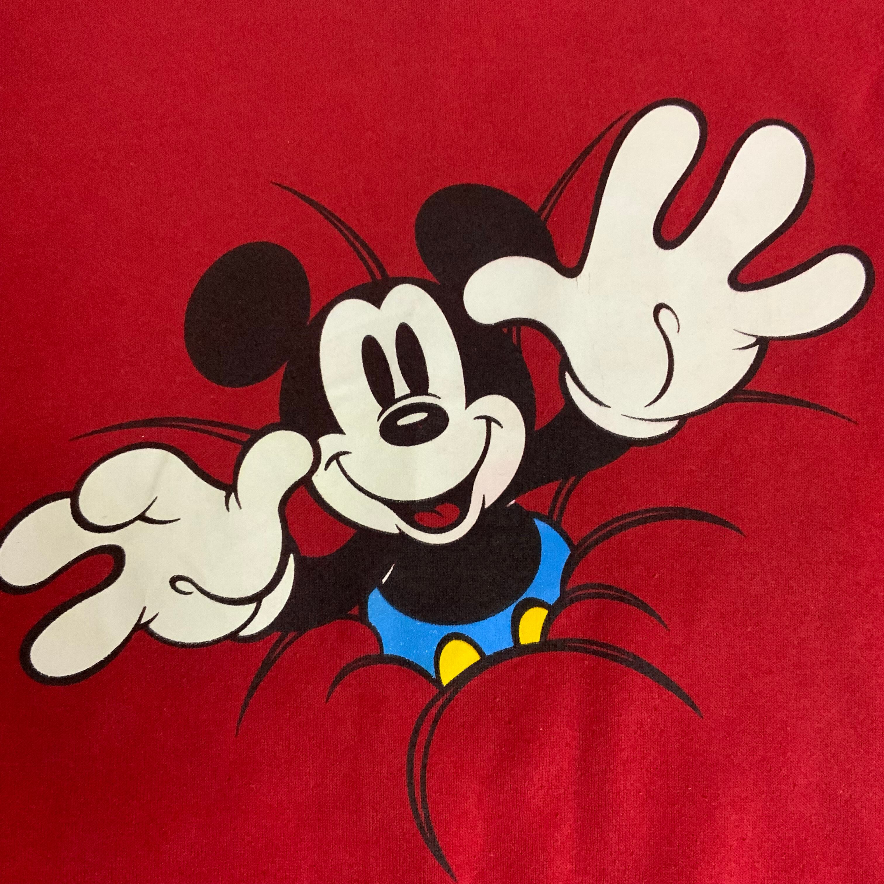 90年代 90s ミッキーマウス両面プリント キャラクター スウェット トレーナー レディースM 古着 レッド 赤 ヴィンテージ ビンテージ Disney ディズニー【f231013024】