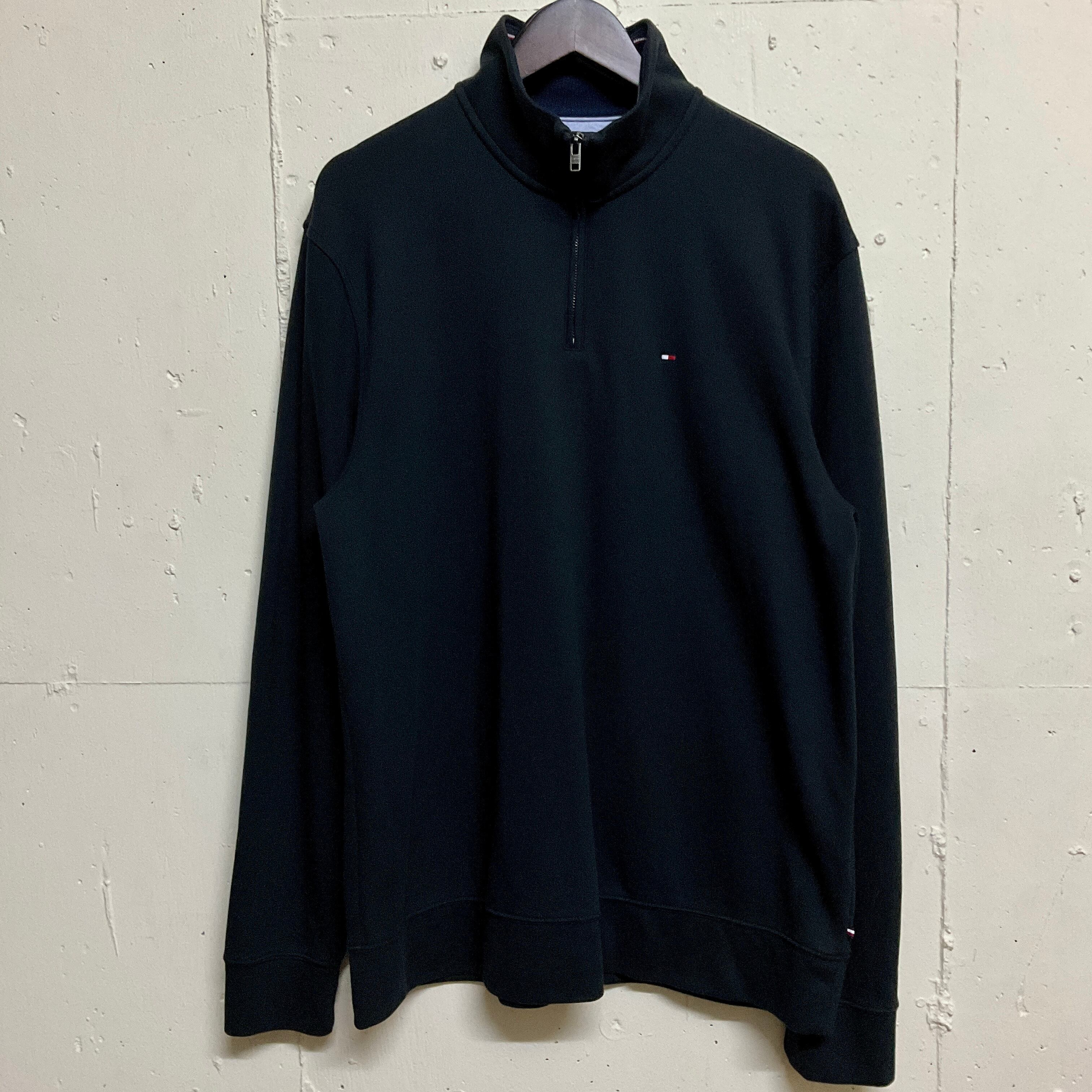 TOMMY HILFIGERトミーヒルフィガー ハーフジップ スウェット ネイビー 紺色 メンズXL 古着 【f231016013】