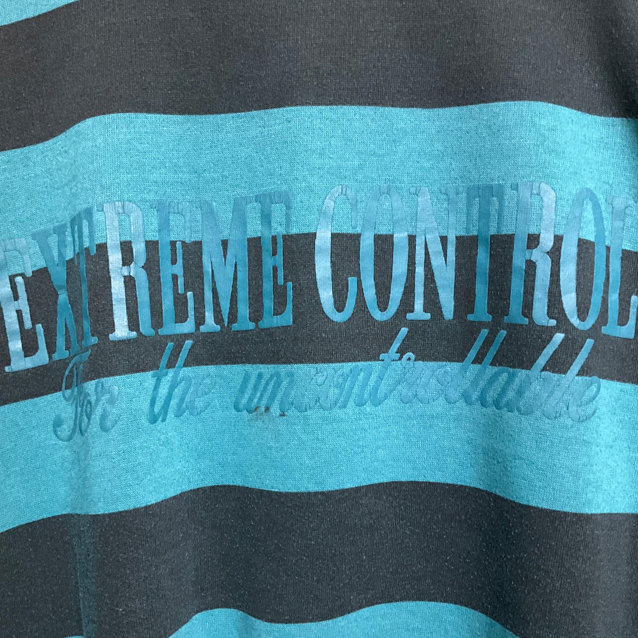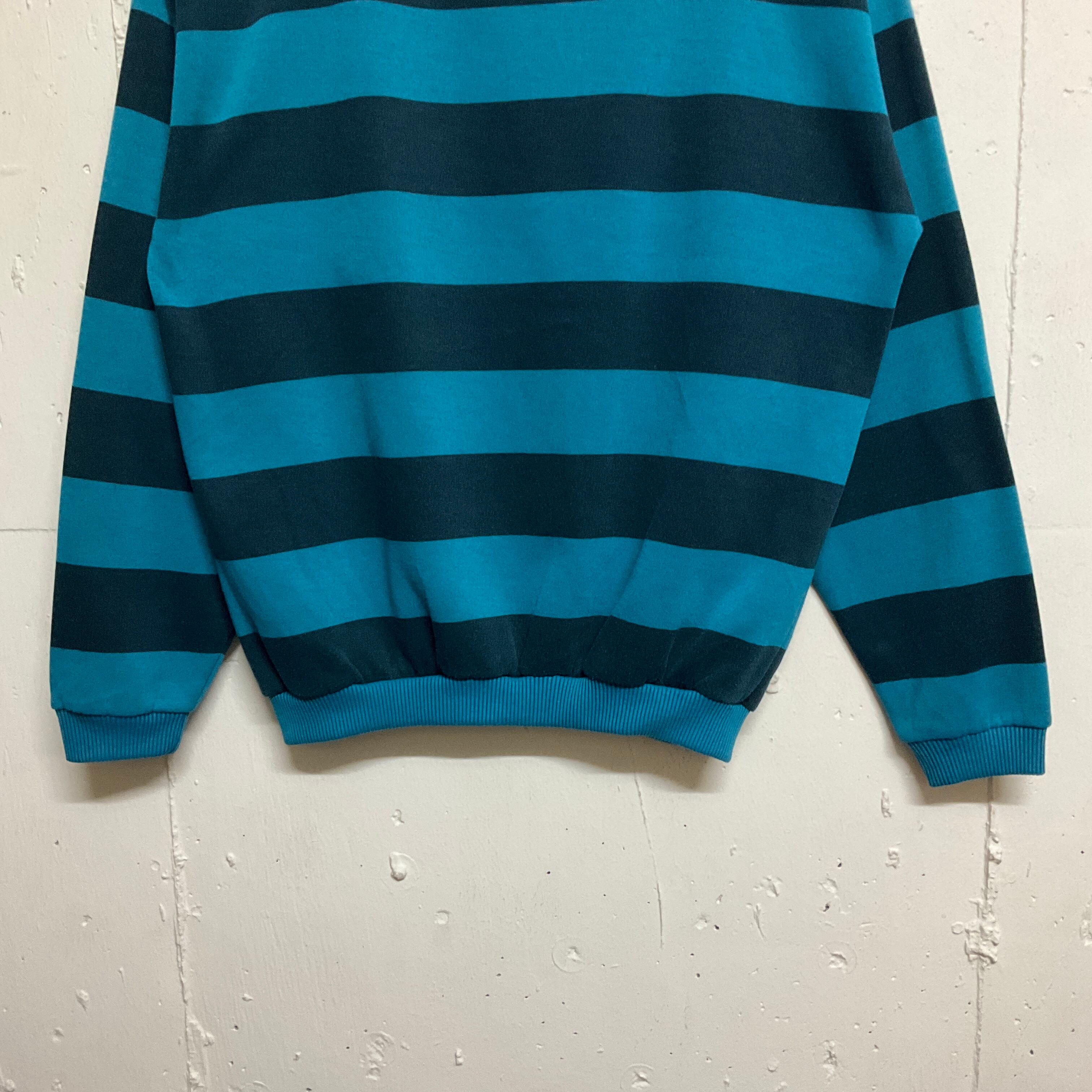 EXTREME CONTROL ボーダー ロゴプリント スウェット トレーナー ターコイズ 青緑 メンズS古着【f231017006】
