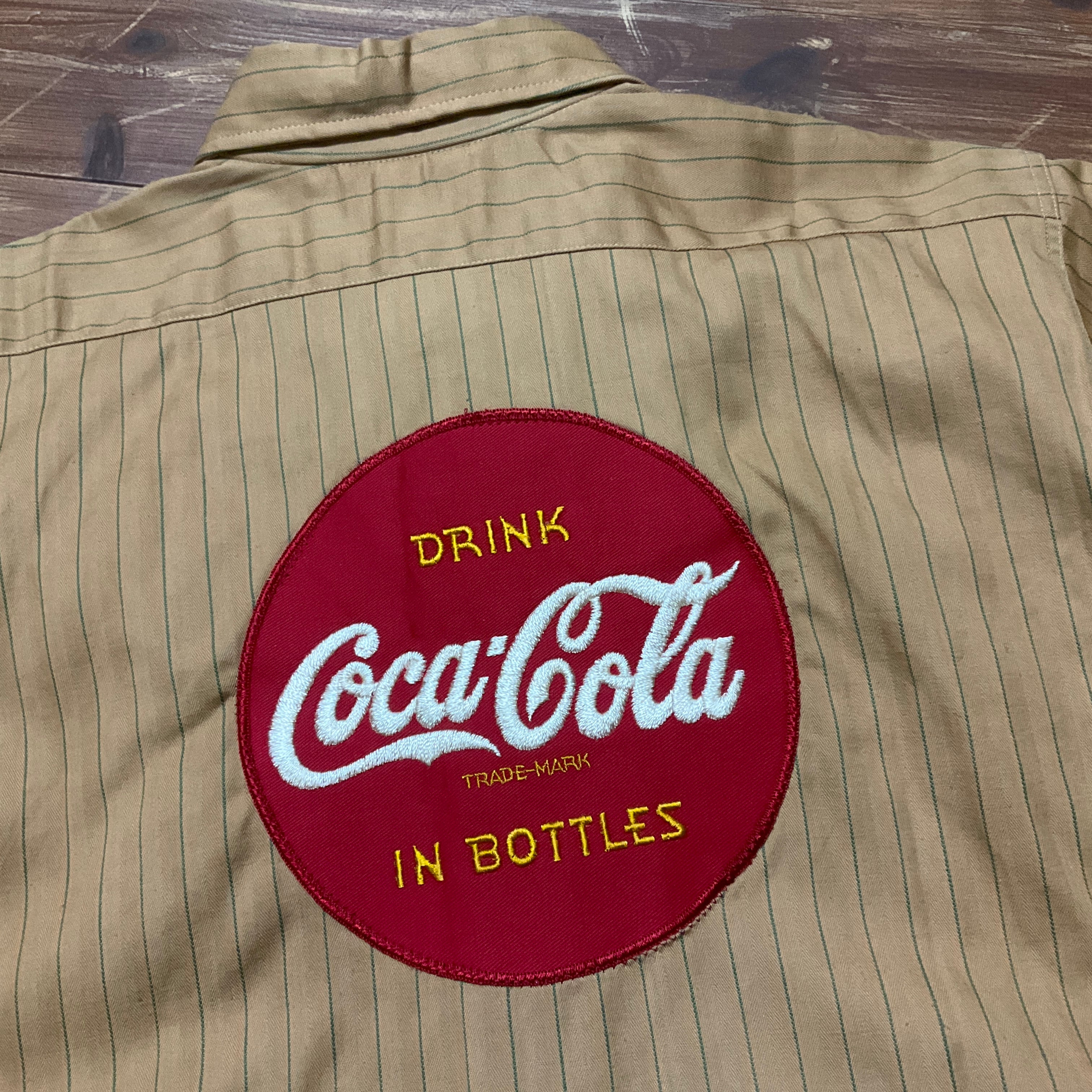 USA製 〜50年代 40s 50s Coca-Cola コカコーラ ストライプ ワッペン ワークシャツ 長袖シャツ 古着 ヴィンテージ ビンテージ ブラウン 茶色【f231017011】