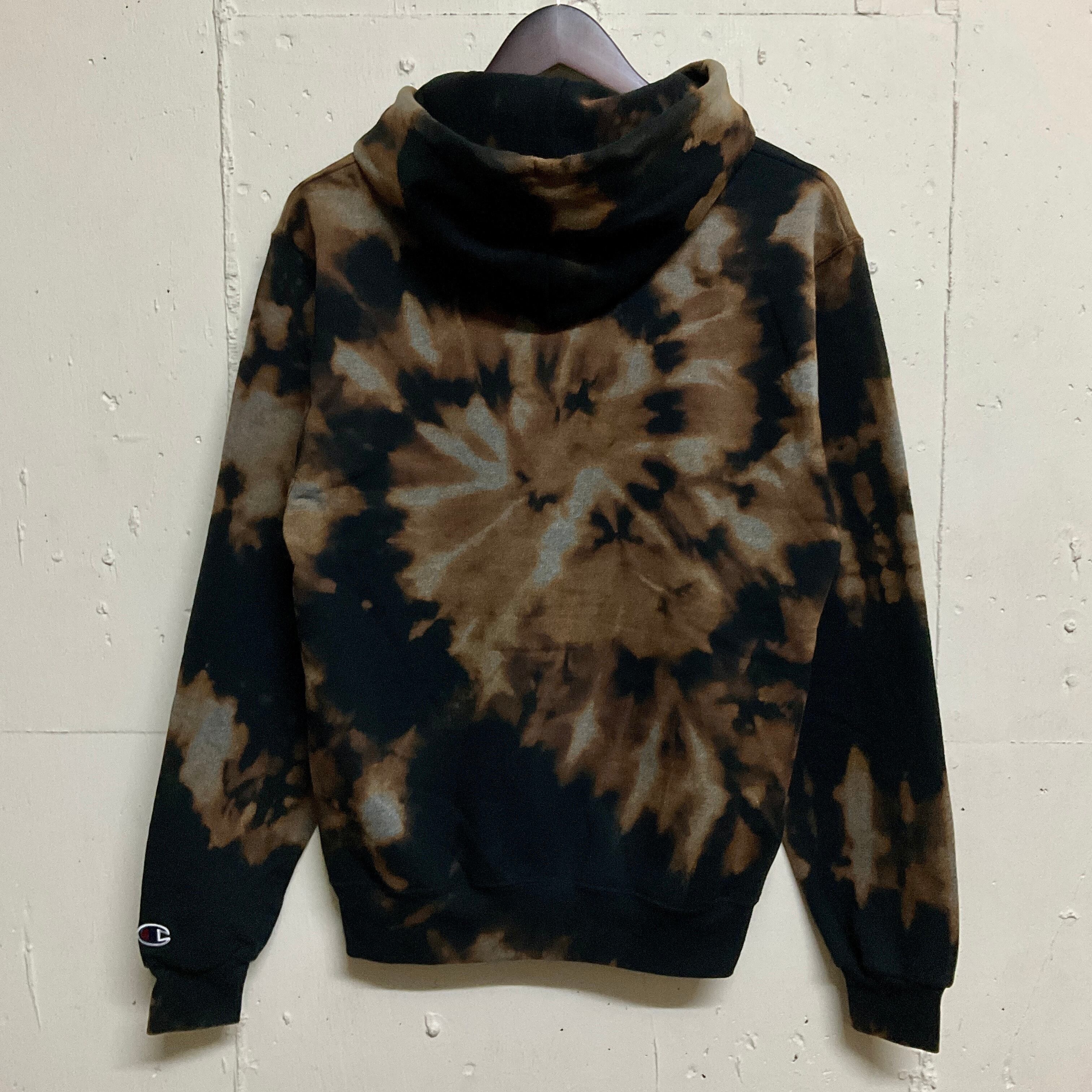 Champion チャンピオン タイダイ 無地 スウェットパーカー フーディ 古着 メンズL ブラック×ブラウン【f231017013】