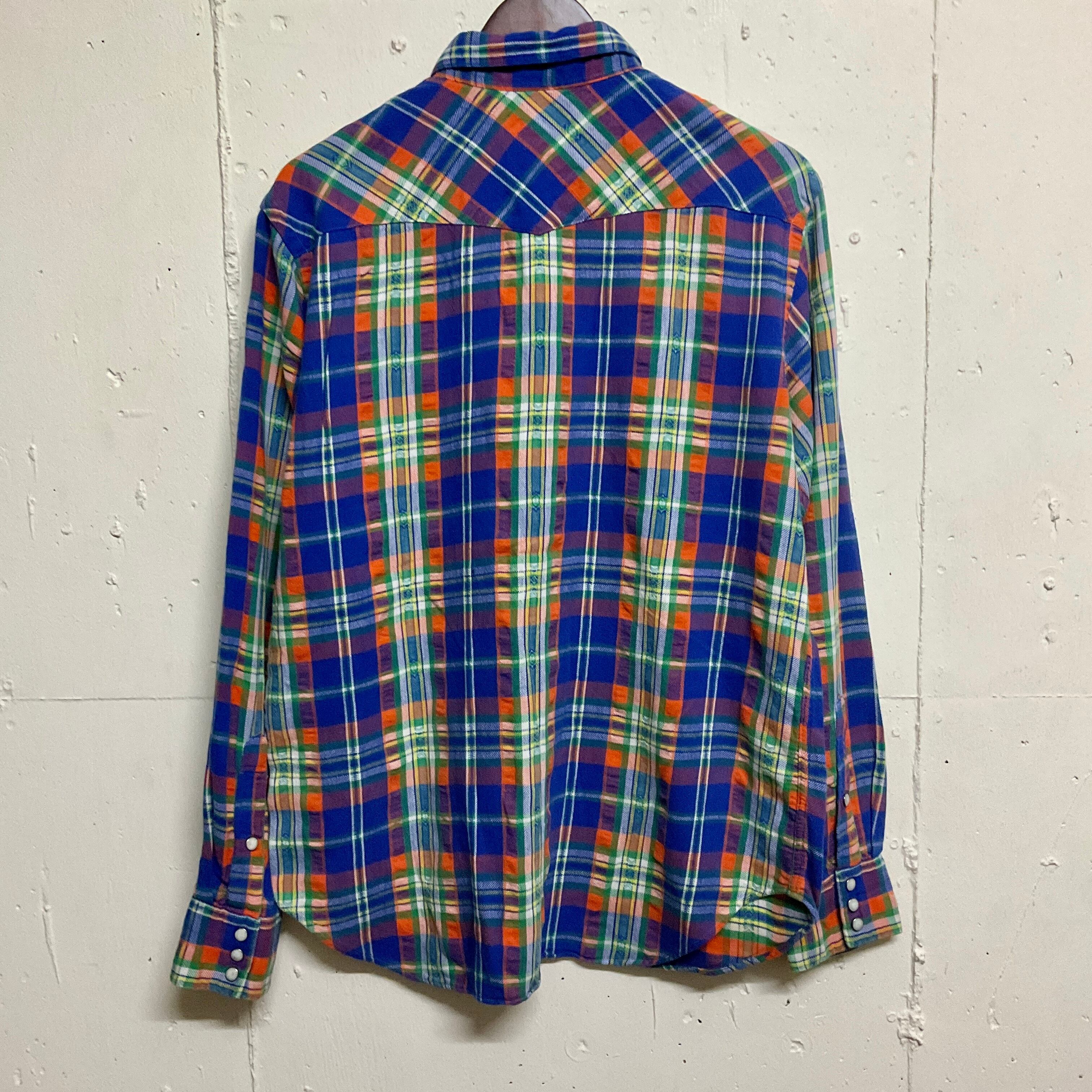 Polo by Ralph Lauren ポロバイラルフローレン ウエスタン ライトネルシャツ チェックシャツ 古着 メンズL オールドラルフローレン ブルー×オレンジ×グリーン【f231017014】