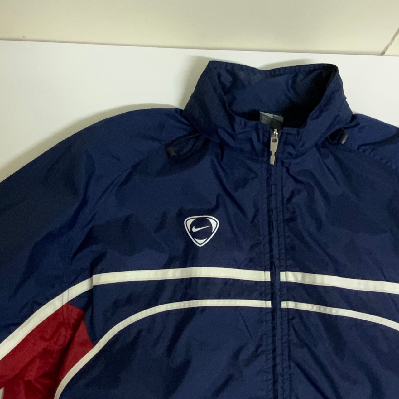 NIKE ナイキ フード収納型 ナイロンジャケット メンズL 古着 ネイビー 紺色【f231018011】