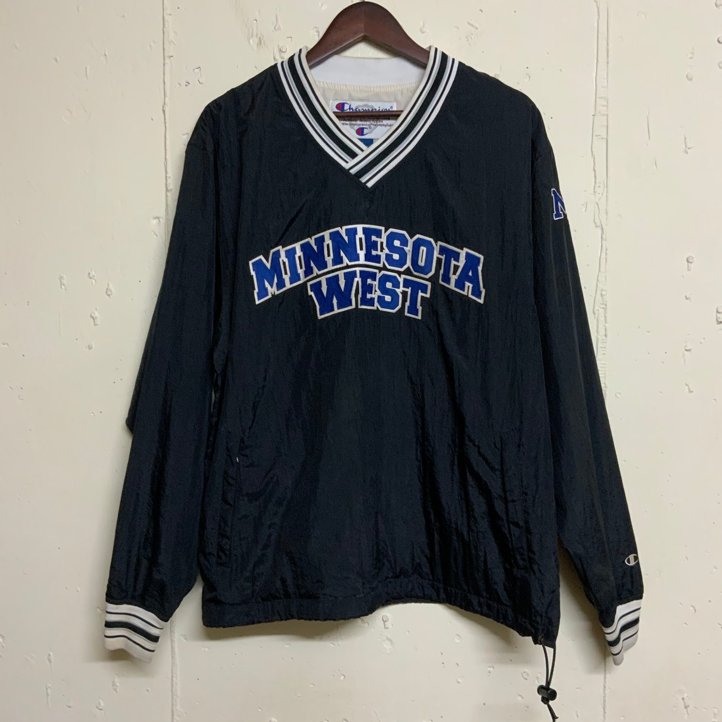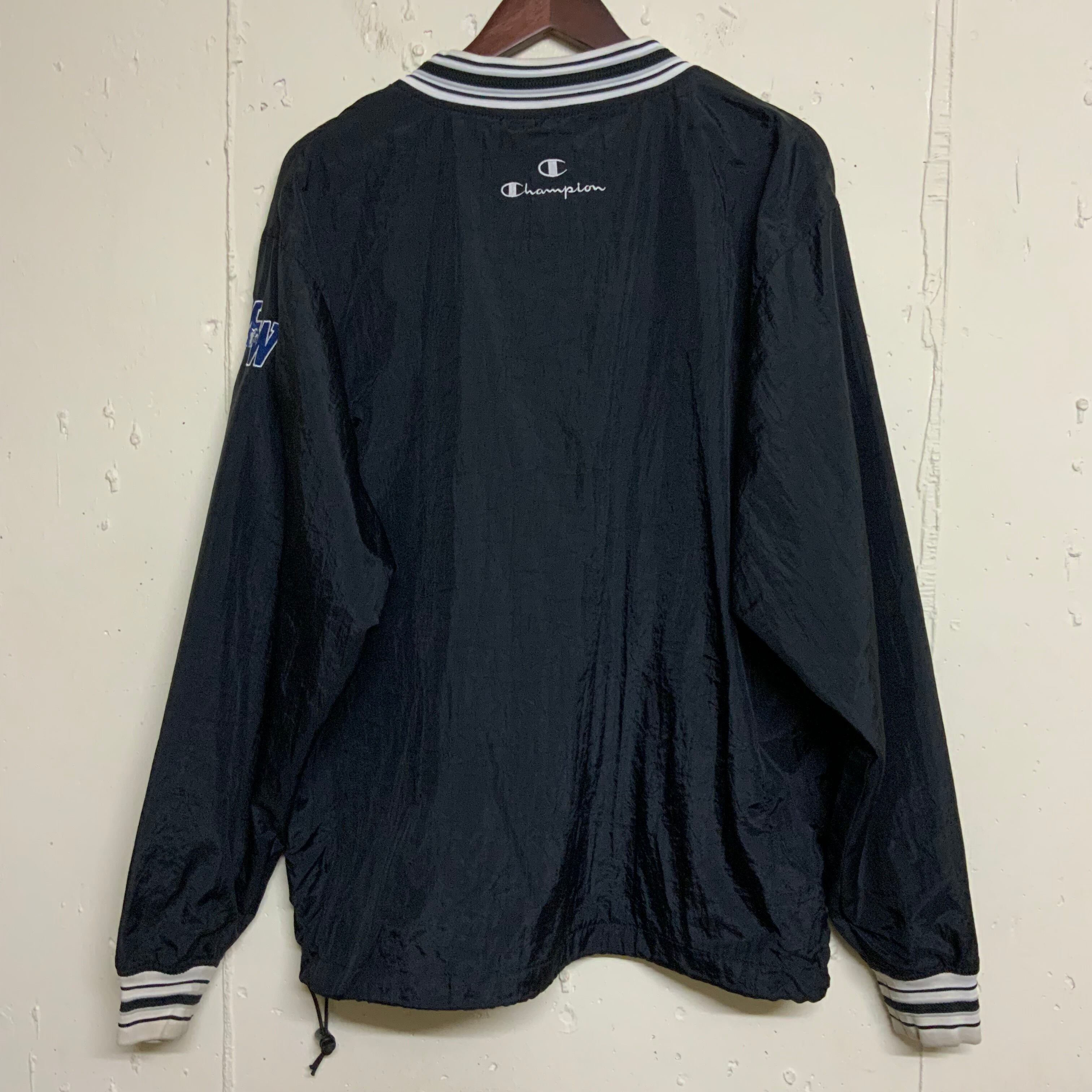 90s 90年代 Champion チャンピオン プルオーバー ナイロンジャケット メンズM 古着 ブラック 黒 チーム ヴィンテージ ビンテージ【f231018015】