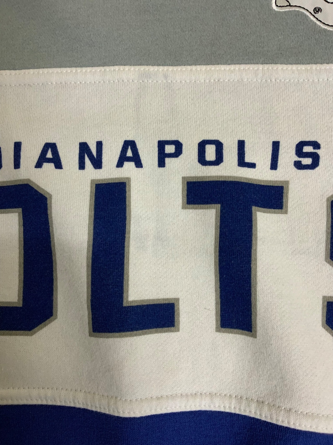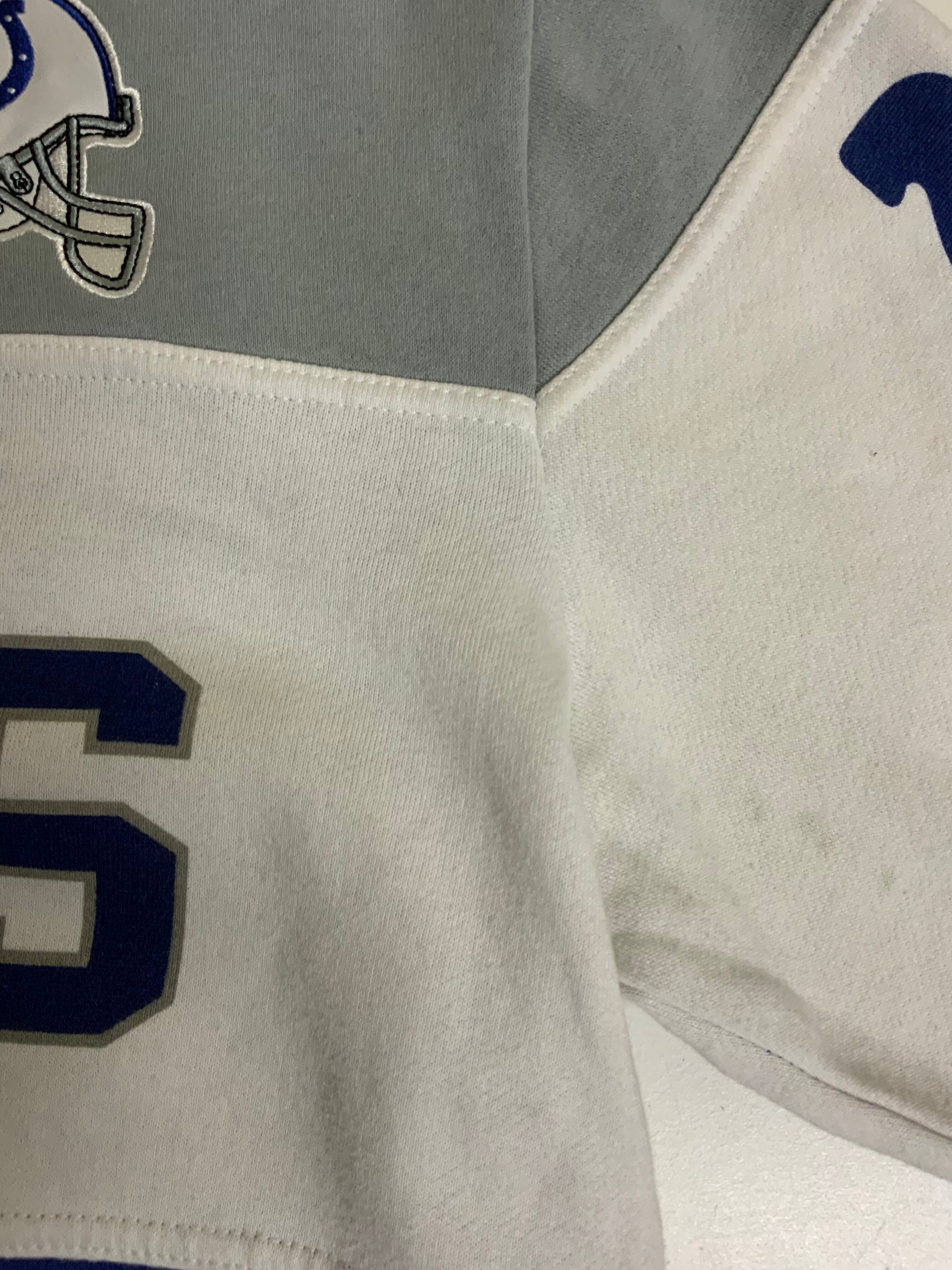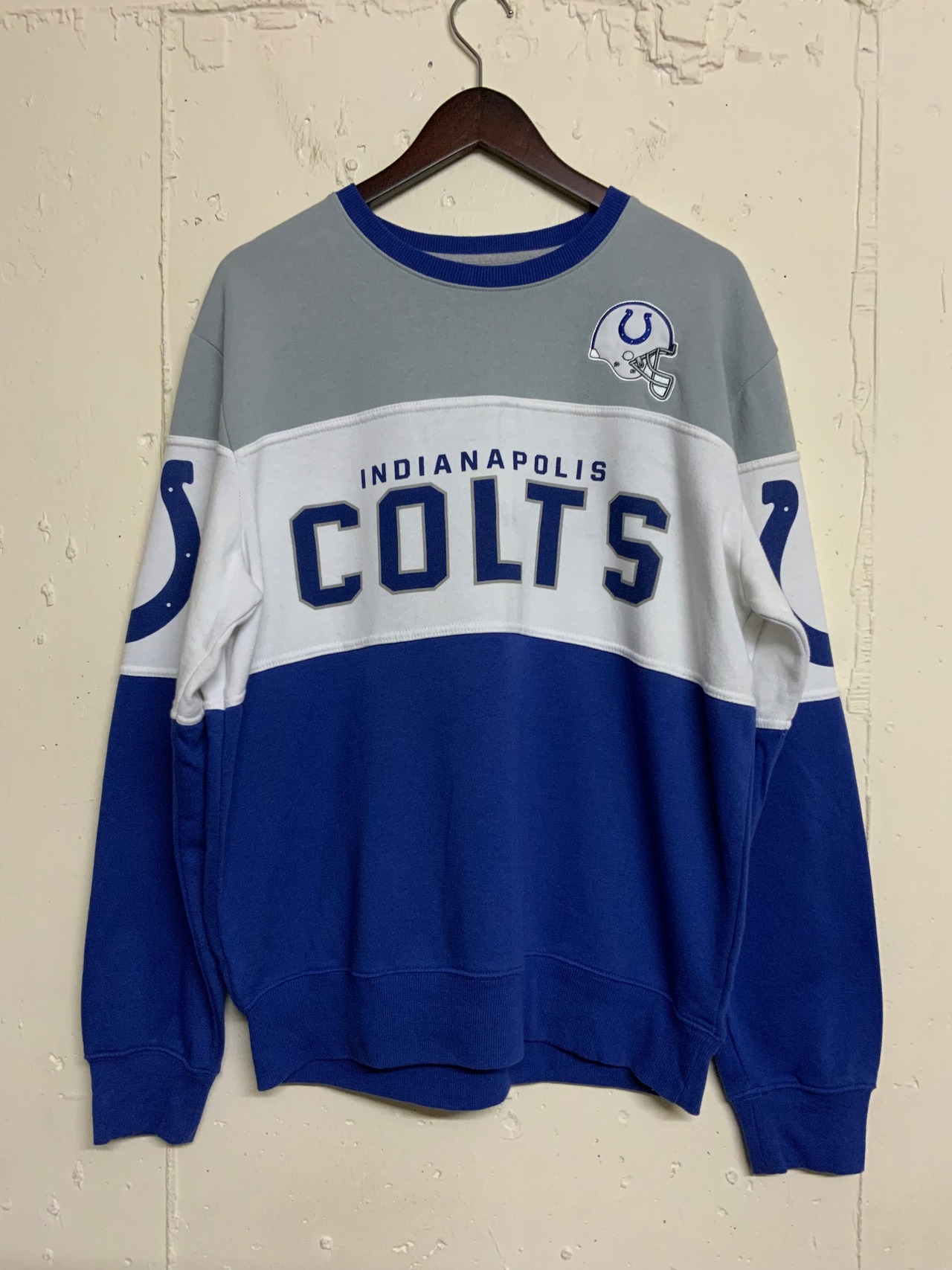 COLTS NFL チームロゴ 切り替え スウェット トレーナー 古着 グレー×ホワイト×ブルー【f231018021】