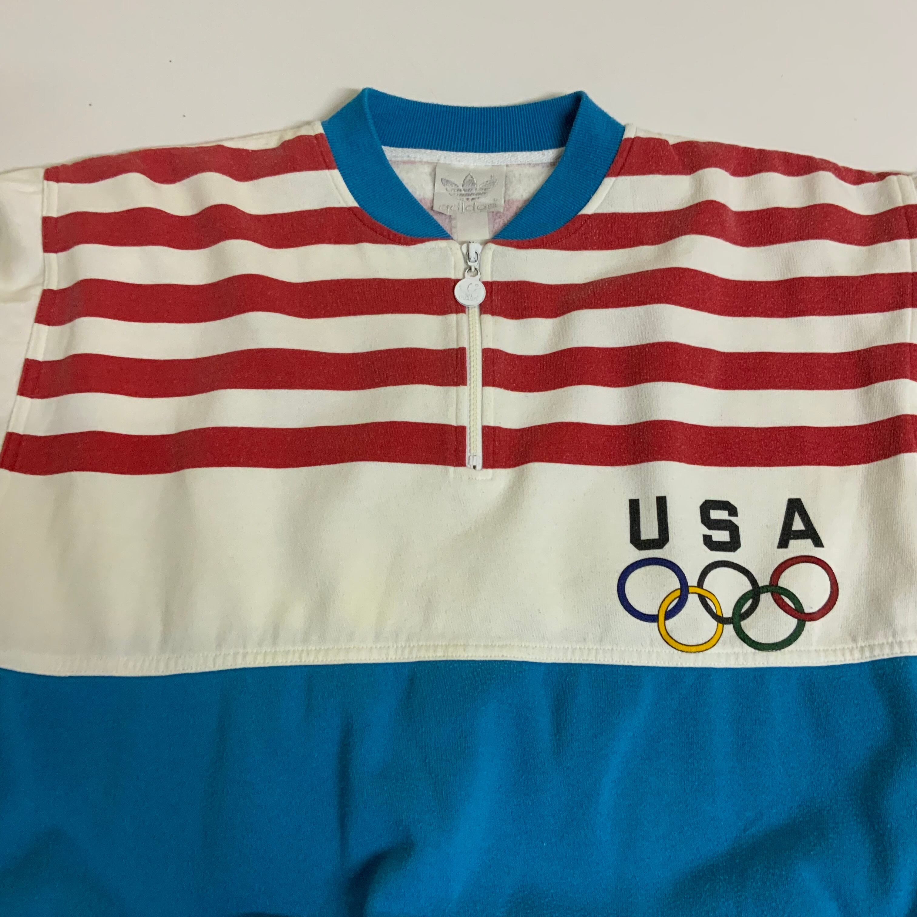 80年代 80s adidas アディダス USAオリンピック ハーフジップ プルオーバー スウェット トレーナー 古着 ヴィンテージ ビンテージ 【f231020010】