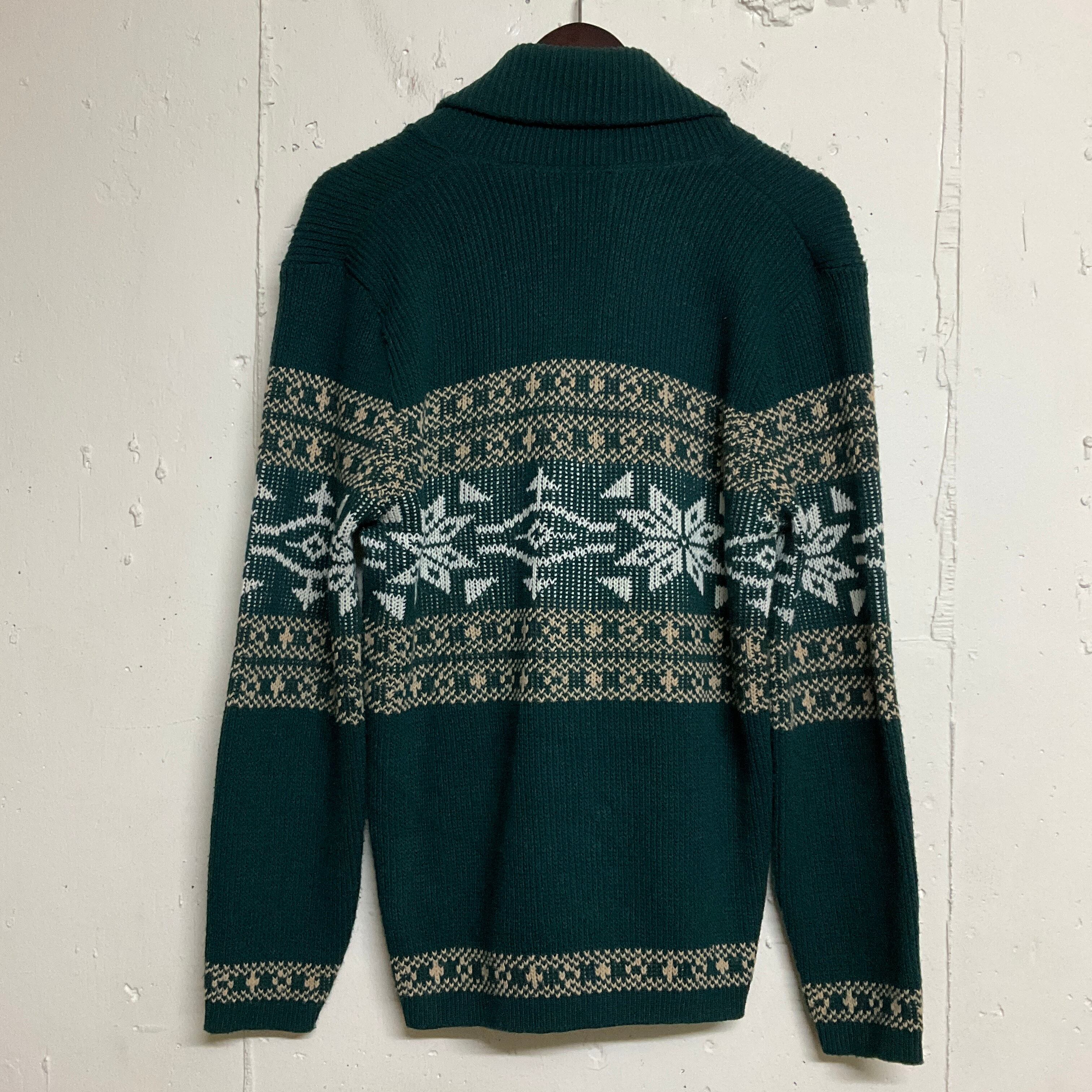USA製 80年代 80s ノルディック柄 ショールカラー ニットカーディガン 古着 ヴィンテージ ビンテージ グリーン 緑色【f231023008】
