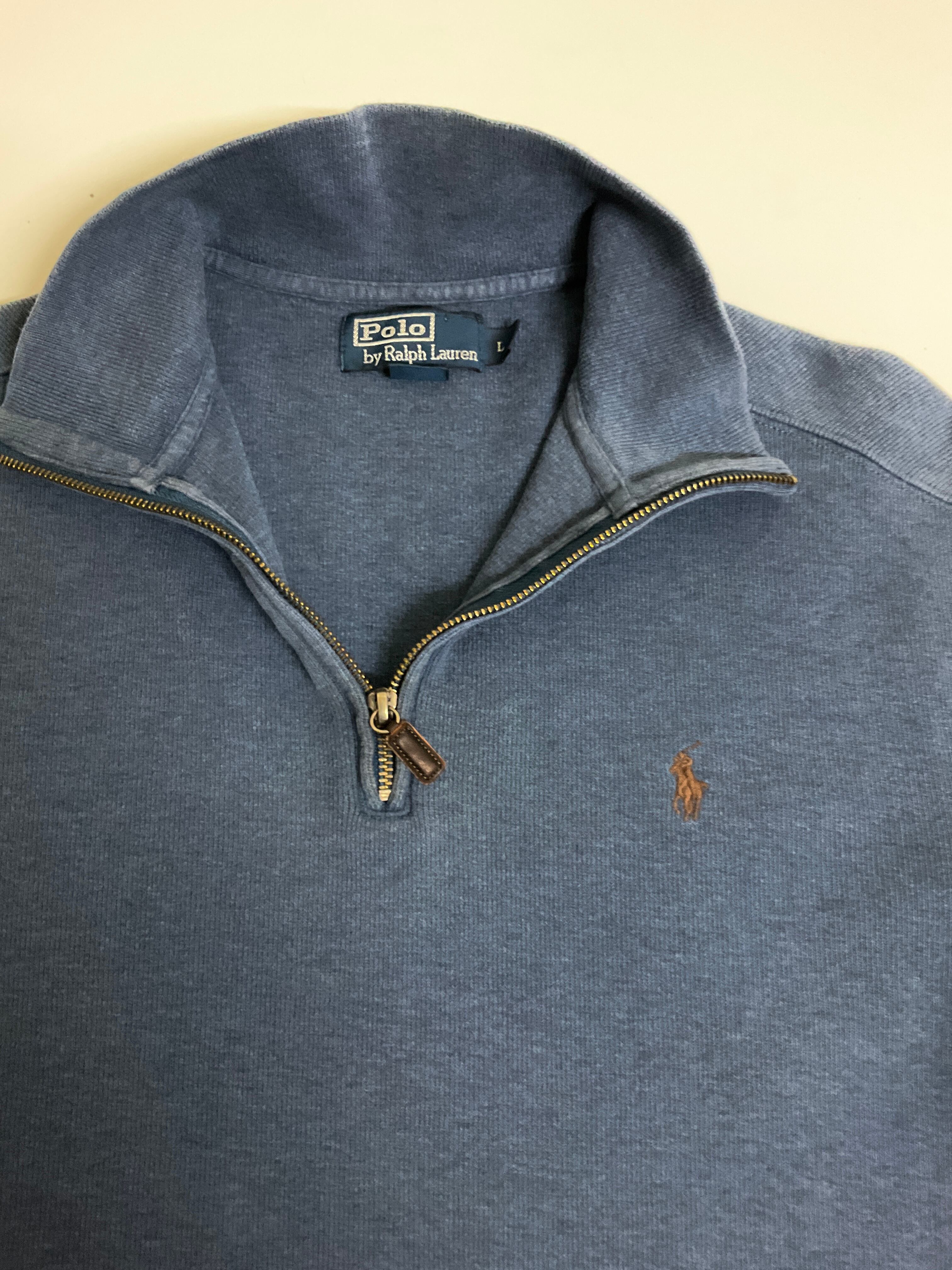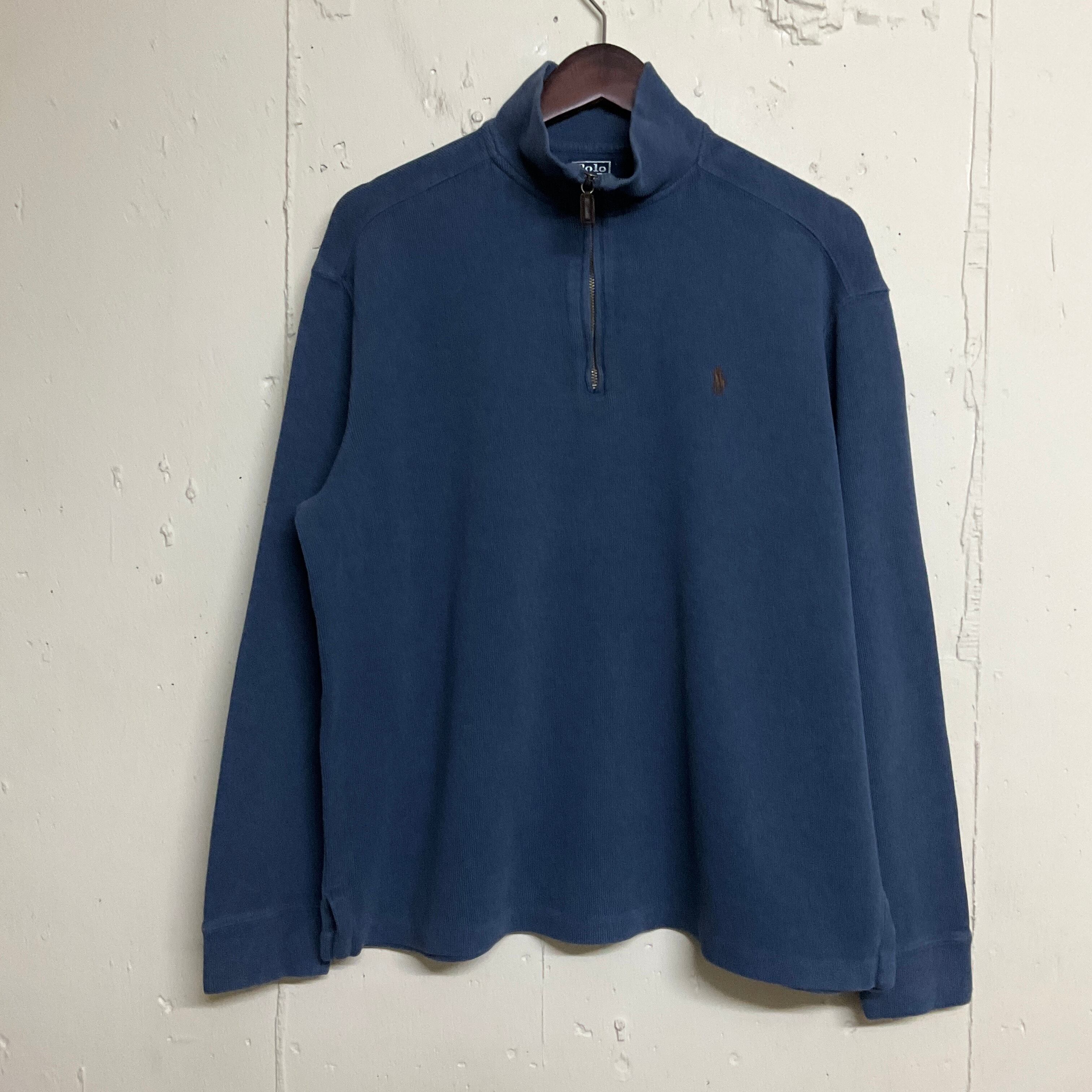 Polo by Ralph Lauren ポロバイラルフローレン ハーフジップ リブ スウェット トレーナー 古着 メンズL グレー オールドラルフローレン【f231025001】
