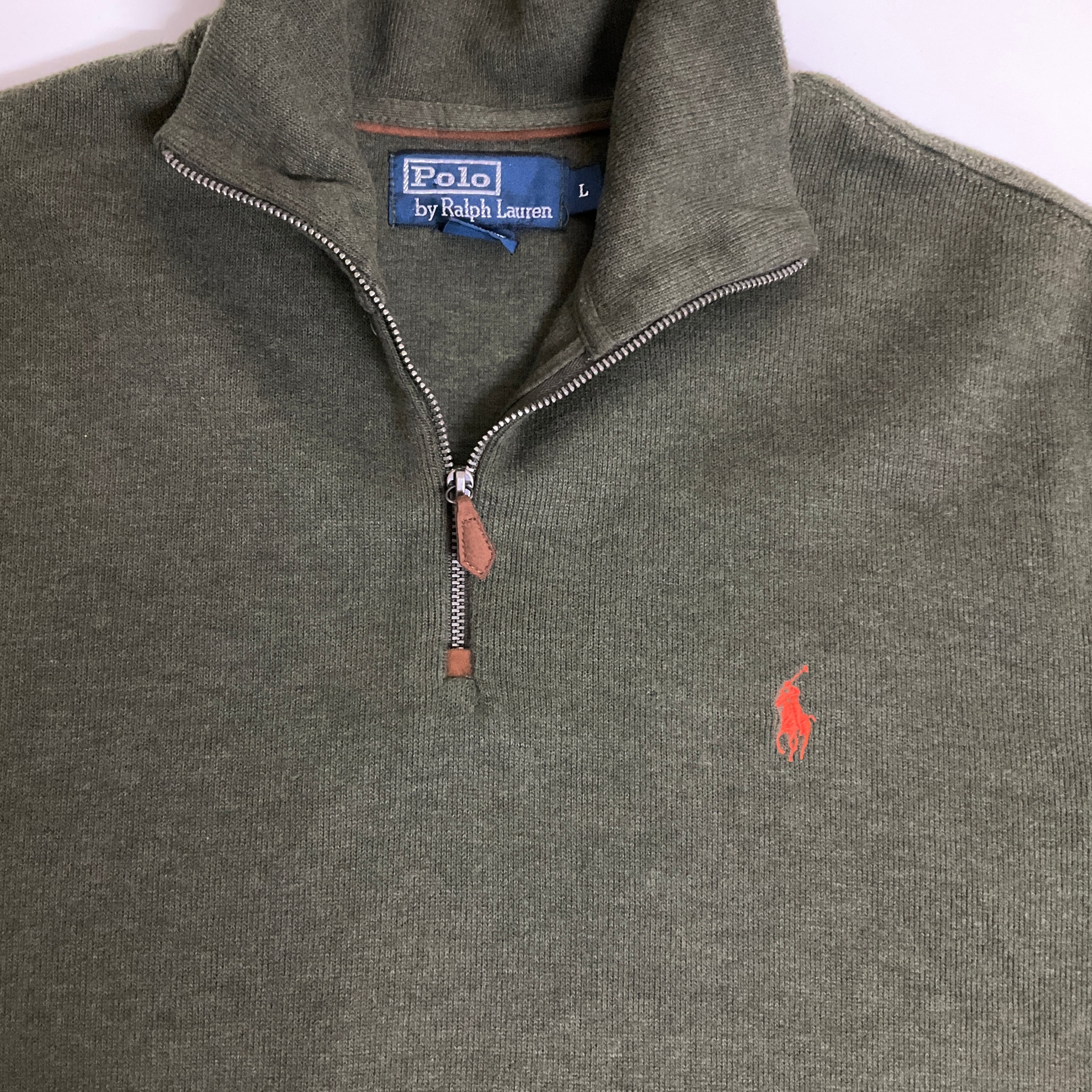 Polo by Ralph Lauren ポロバイラルフローレン ハーフジップ リブ スウェット トレーナー 古着 メンズL カーキグリーン 緑 オールドラルフローレン【f231025002】