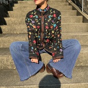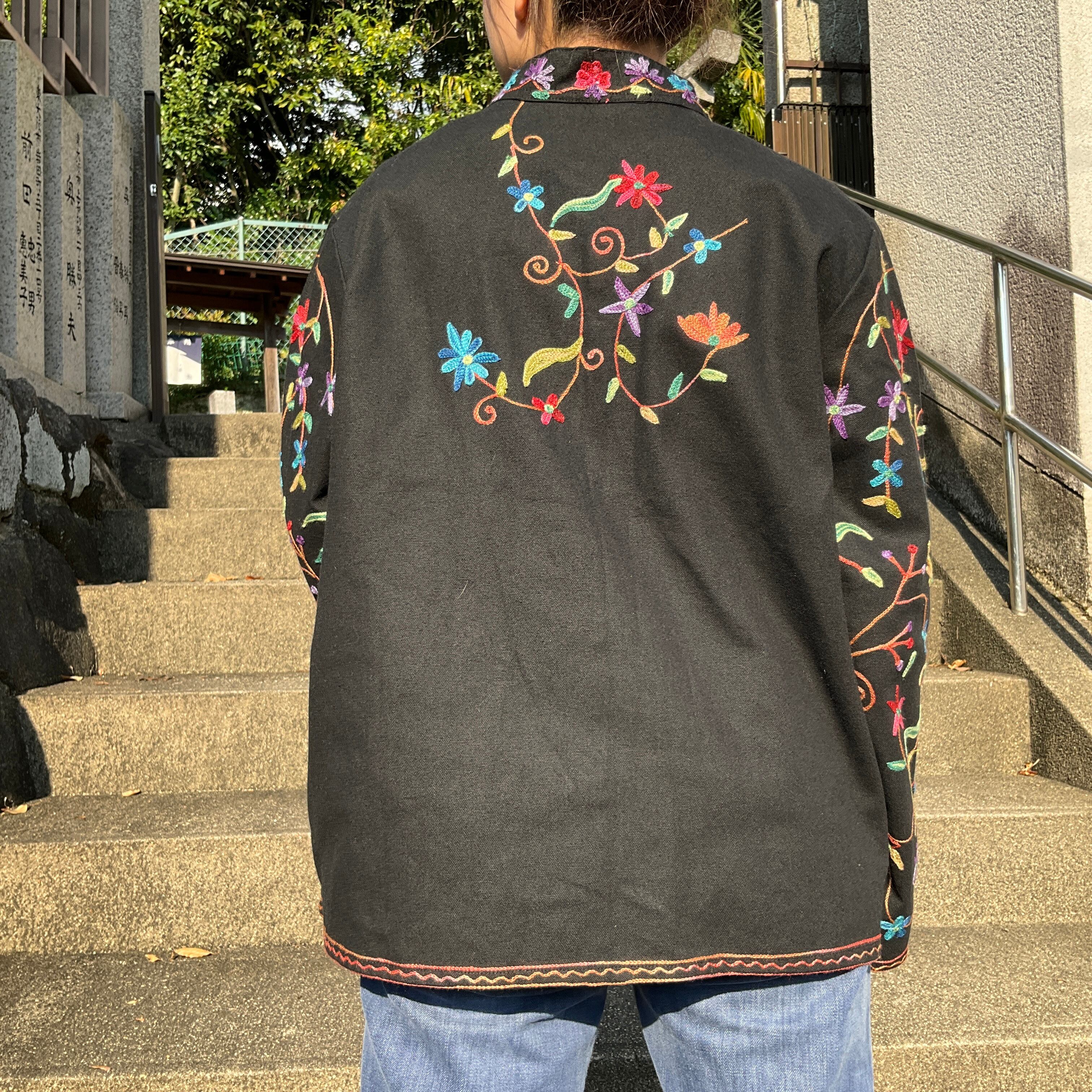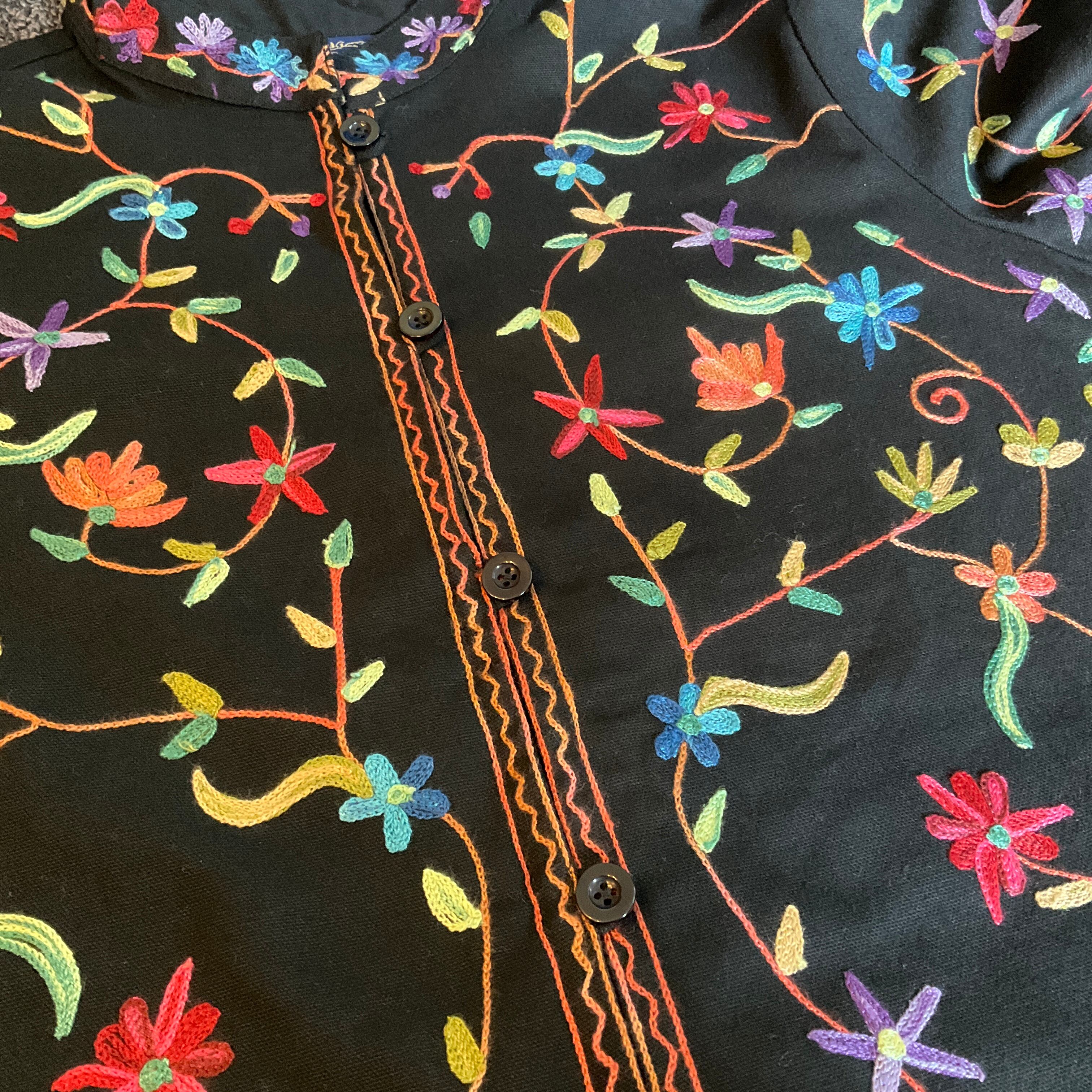 新品未使用品 インド製 Willow Ridge 花 刺繍 長袖シャツ ジャケット レディースL 古着 ブラック 黒【f231027009】
