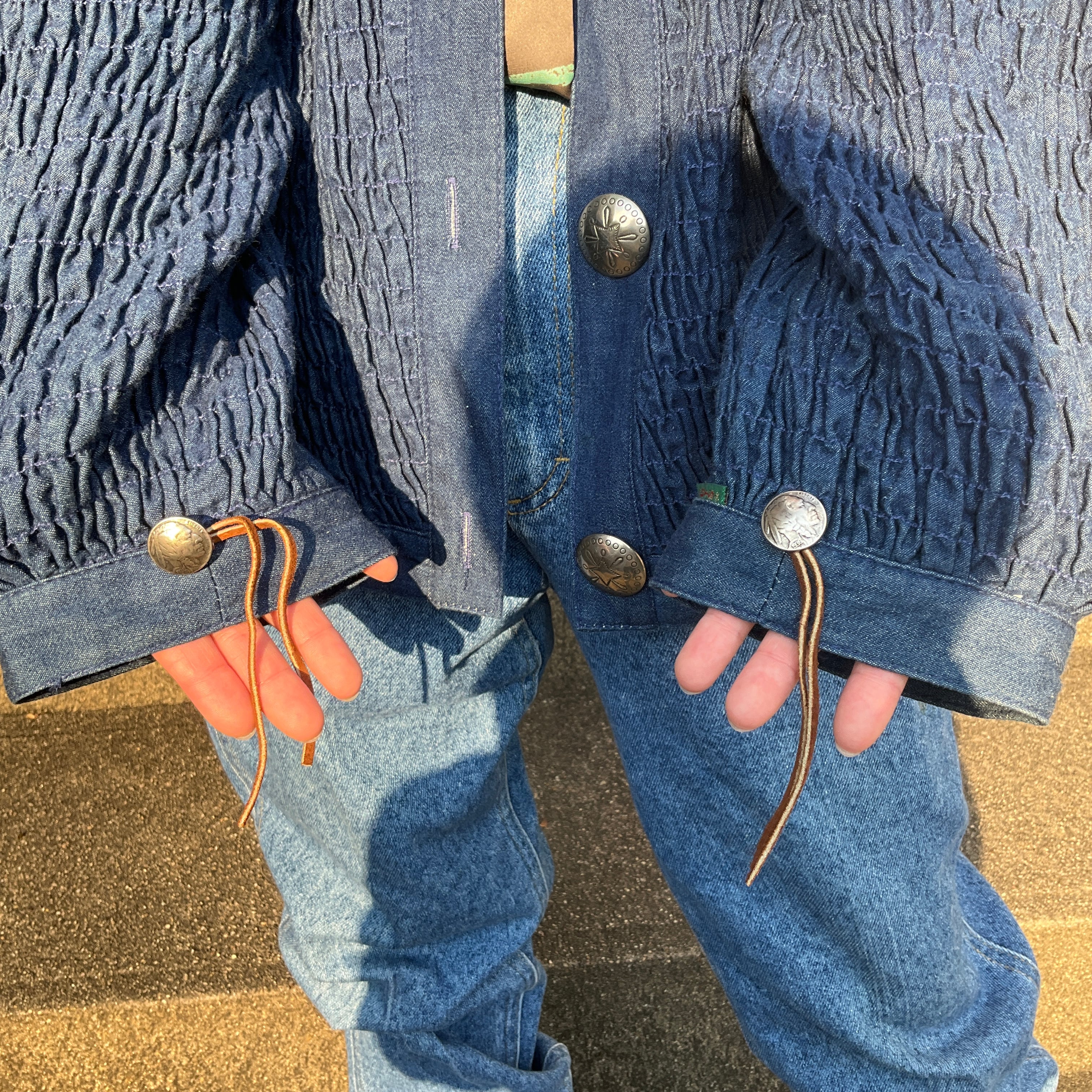 USA製 80年代 80s gene ewing-BIS デザイン デニムジャケット コンチョ レディースM 古着 ヴィンテージ ビンテージ【f231027013】