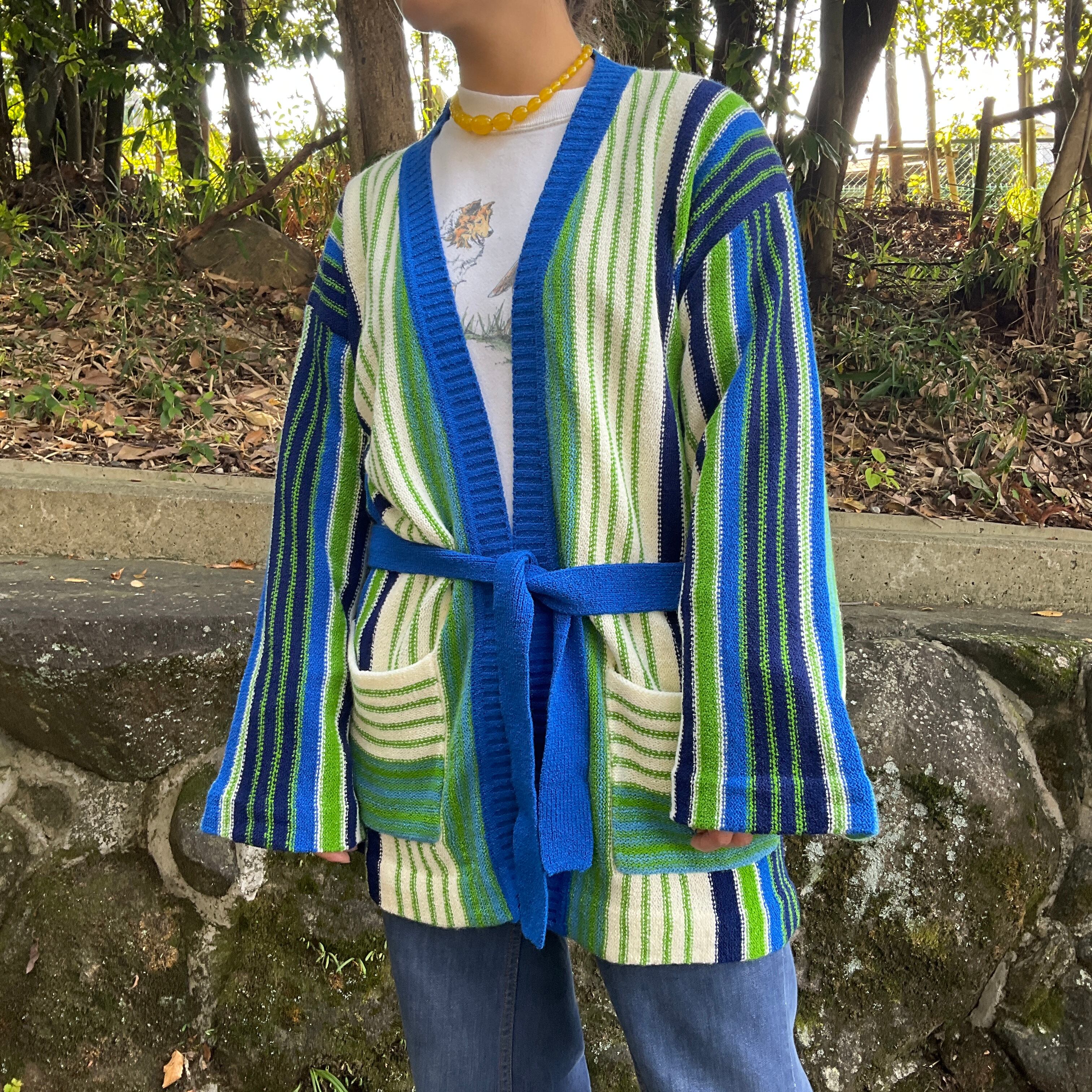 ヴィンテージ ストライプ ハンガーループ カーディガン 古着 ラップカーディガン ビンテージ フレア袖【f231027021】