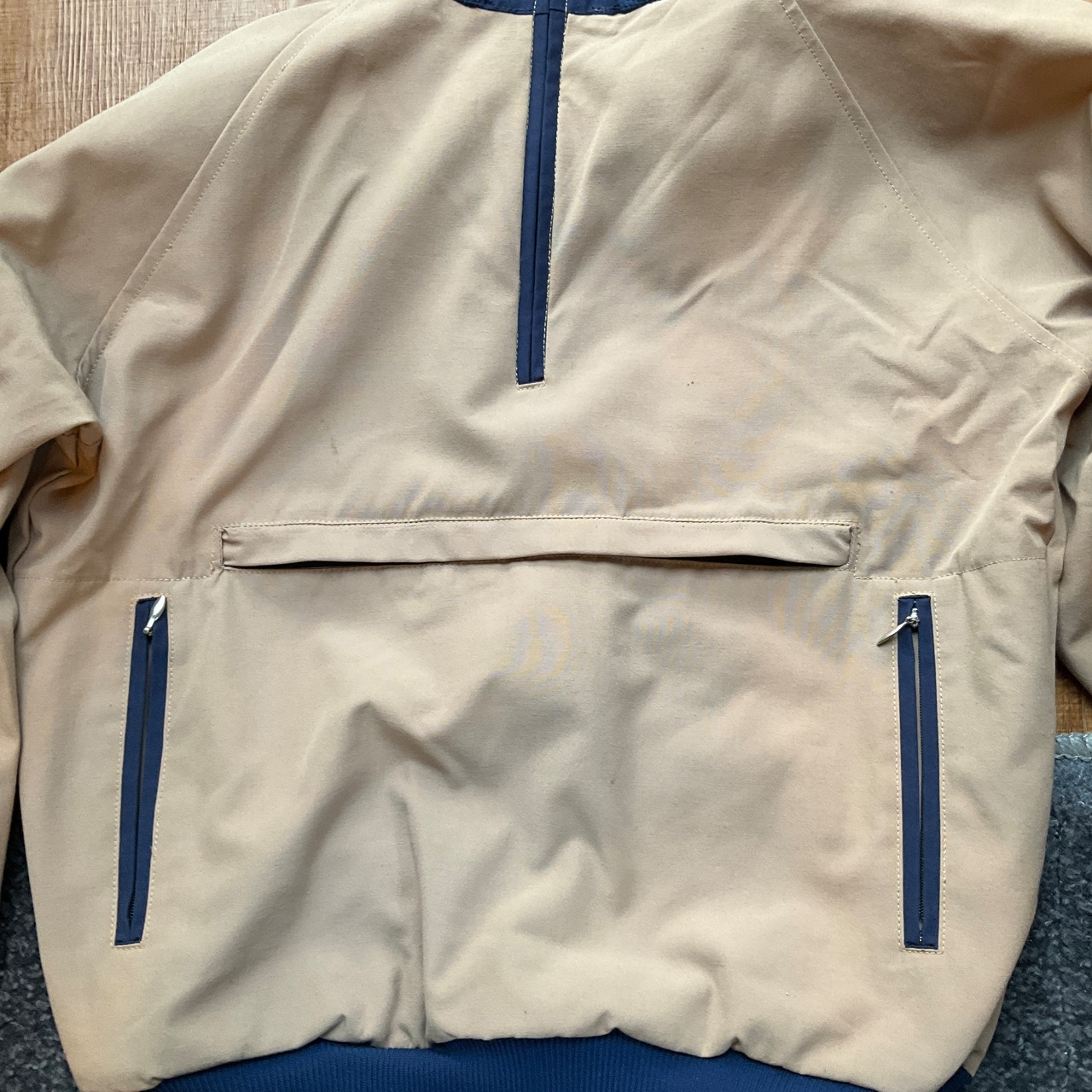 USA製 70年代 70s ヴィンテージ frostline フロストライン ハイネック ハーフジップ プルオーバー アウトドア ジャケット古着 ビンテージ ベージュ×ネイビー TLONジップ【f231027024】