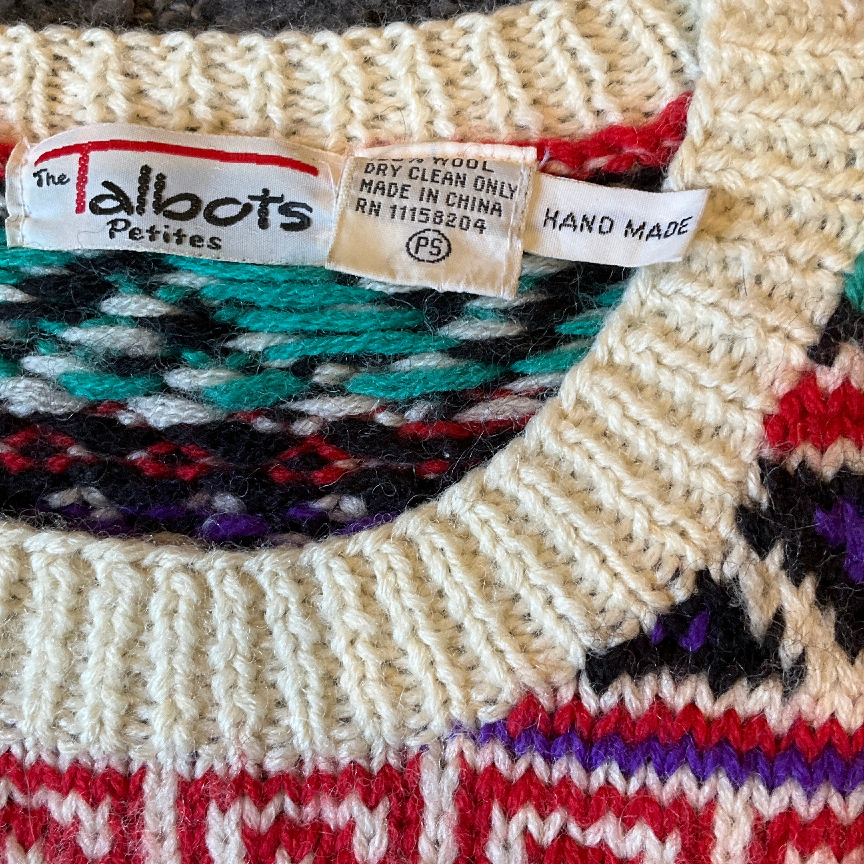 Talbots タルボットハンドメイド ハンドニット 幾何学柄 総柄 ウール ニットセーター 古着 レディースS マルチカラー【f231030001】