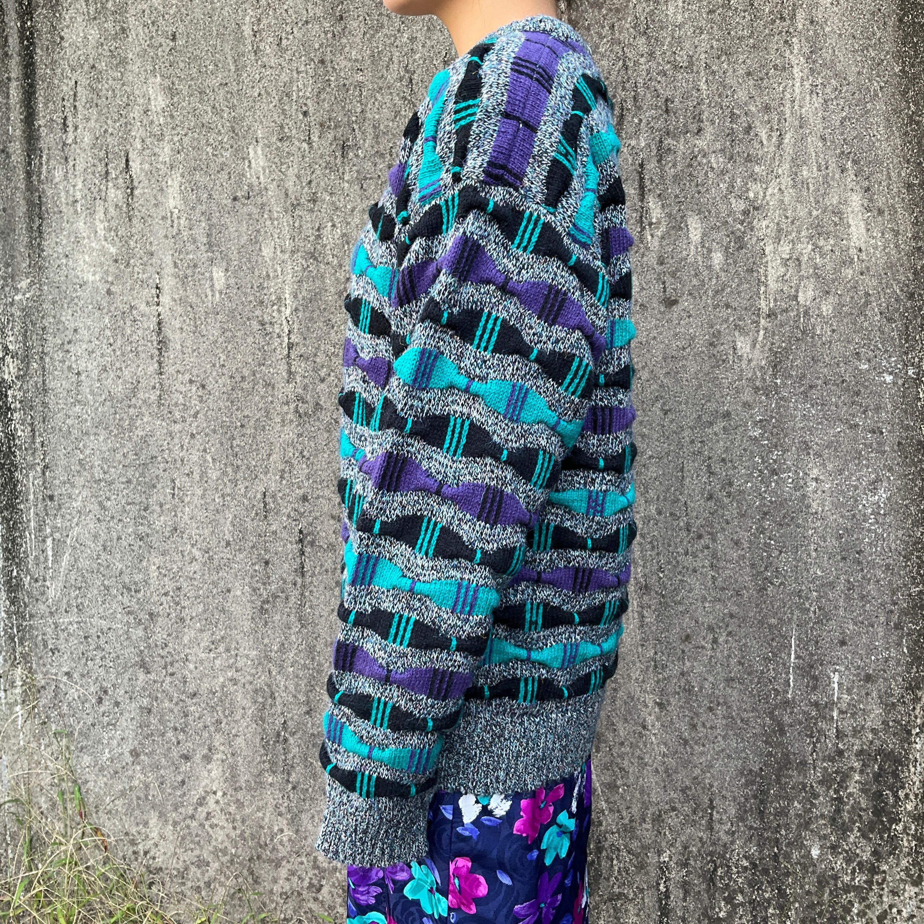 CONCRETE ボーダー アクリル 3D ニットセーター 古着 M 【f231030009】