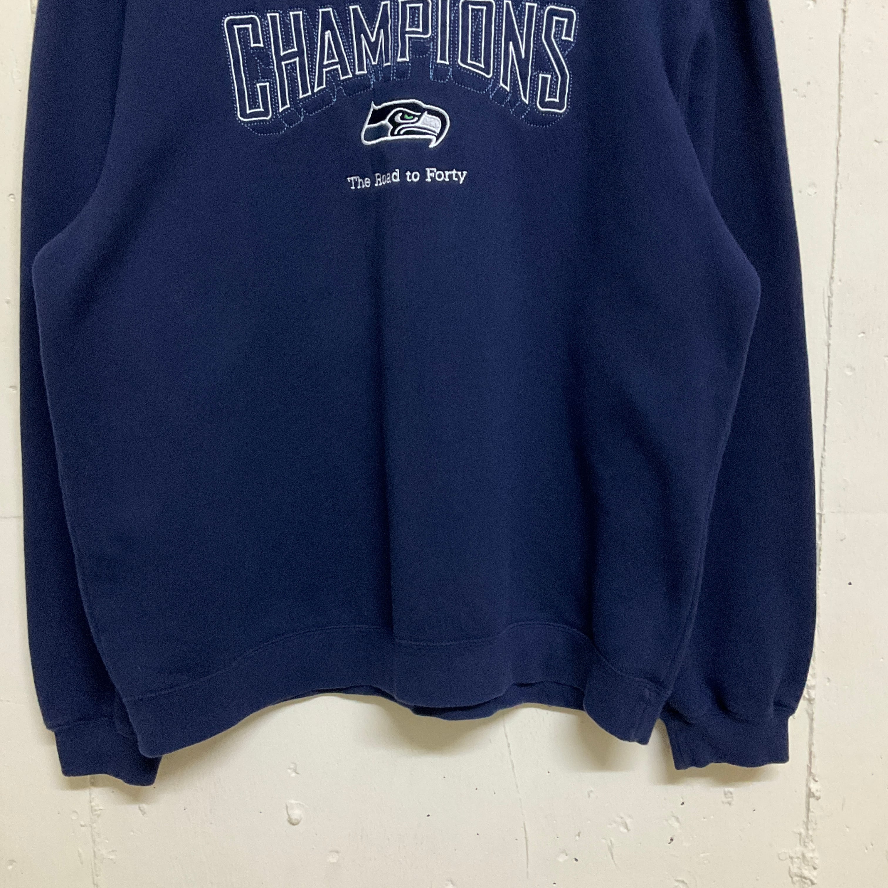 00年代 00s Reebok リーボック NFL シーホークス チームロゴ刺繍 スウェット トレーナー 古着 ネイビー 紺【f231101005】