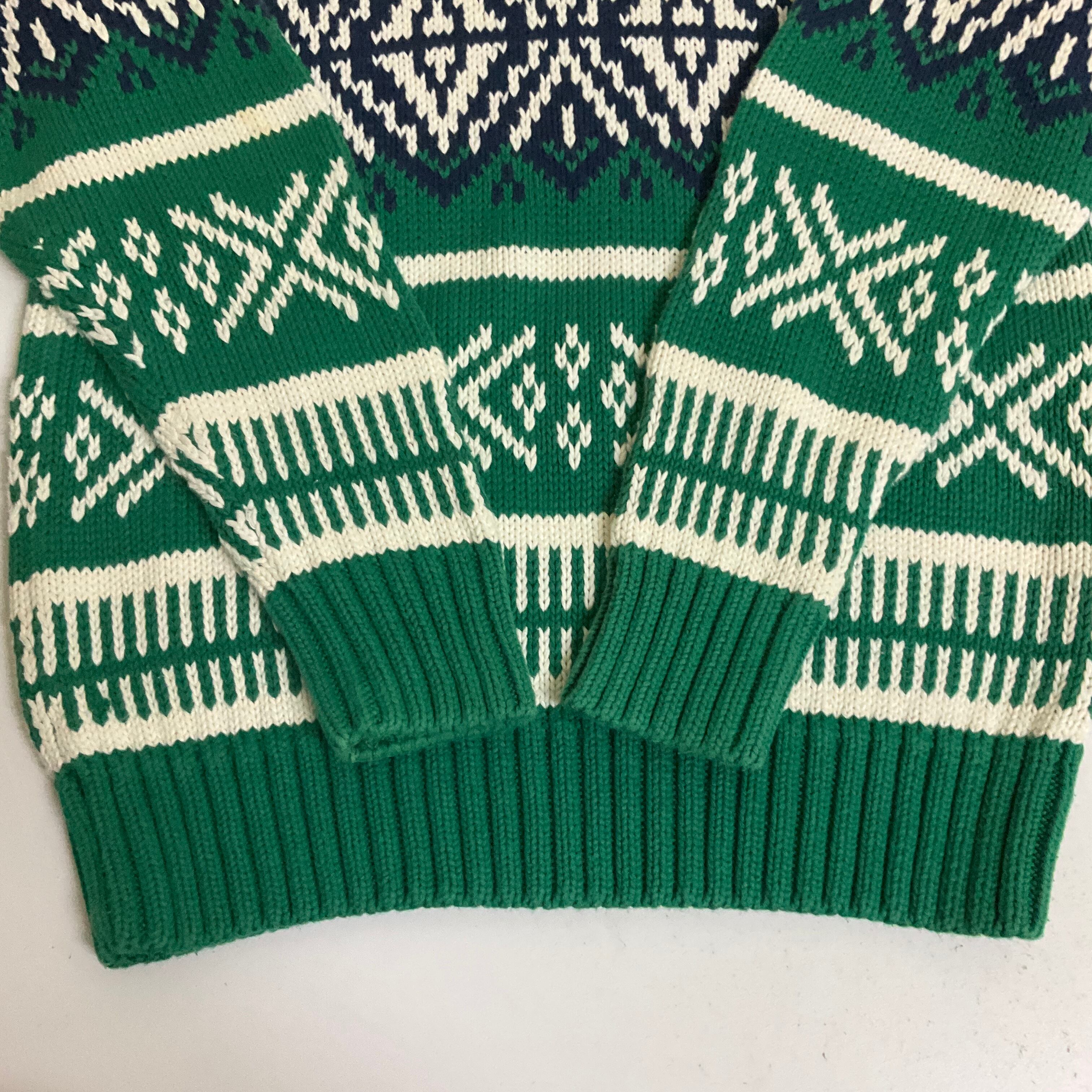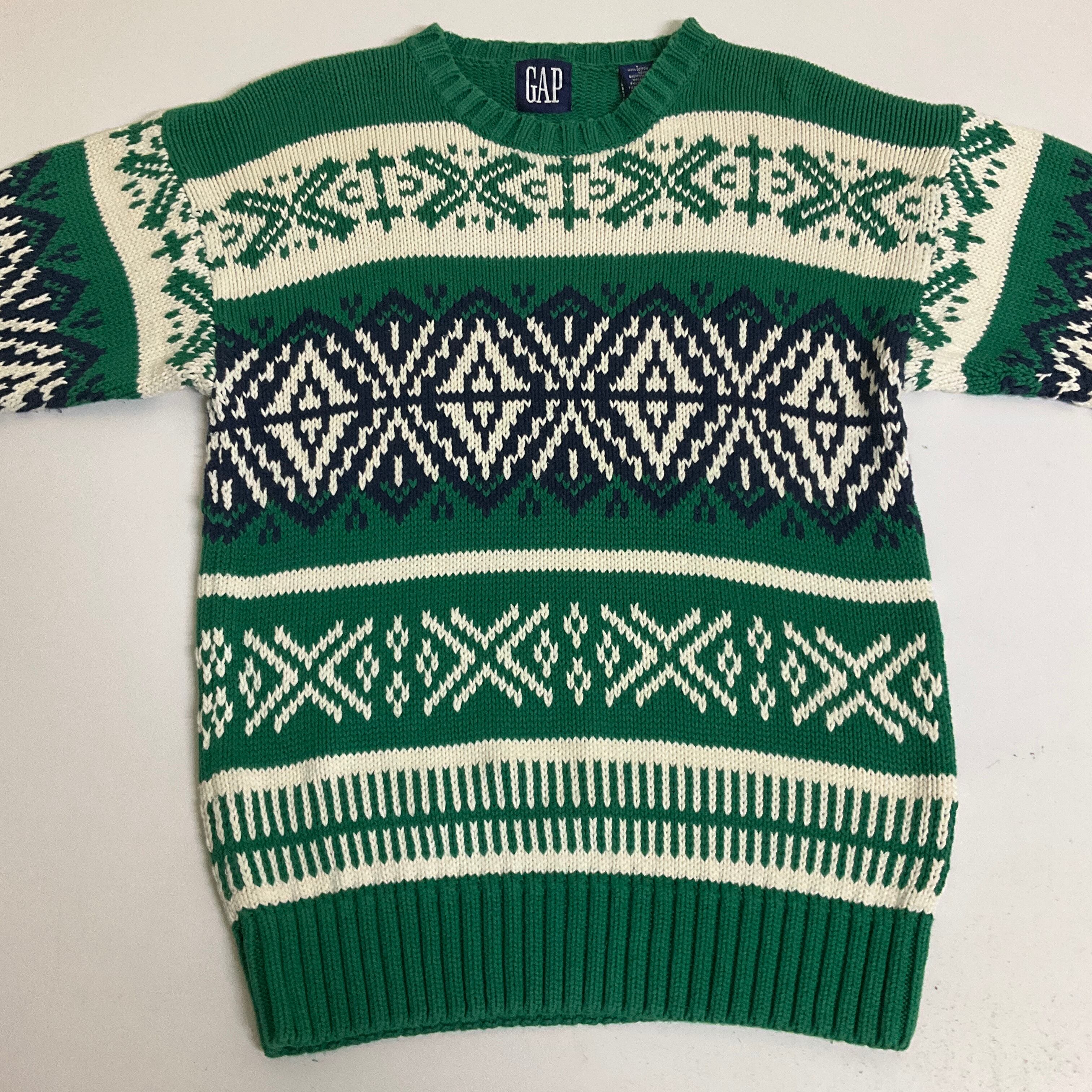 90年代 90s GAP オールドギャップ ノルディック柄 総柄 コットン ニットセーター 古着 メンズS グリーン 緑 ビンテージ ヴィンテージ 【f231106009】