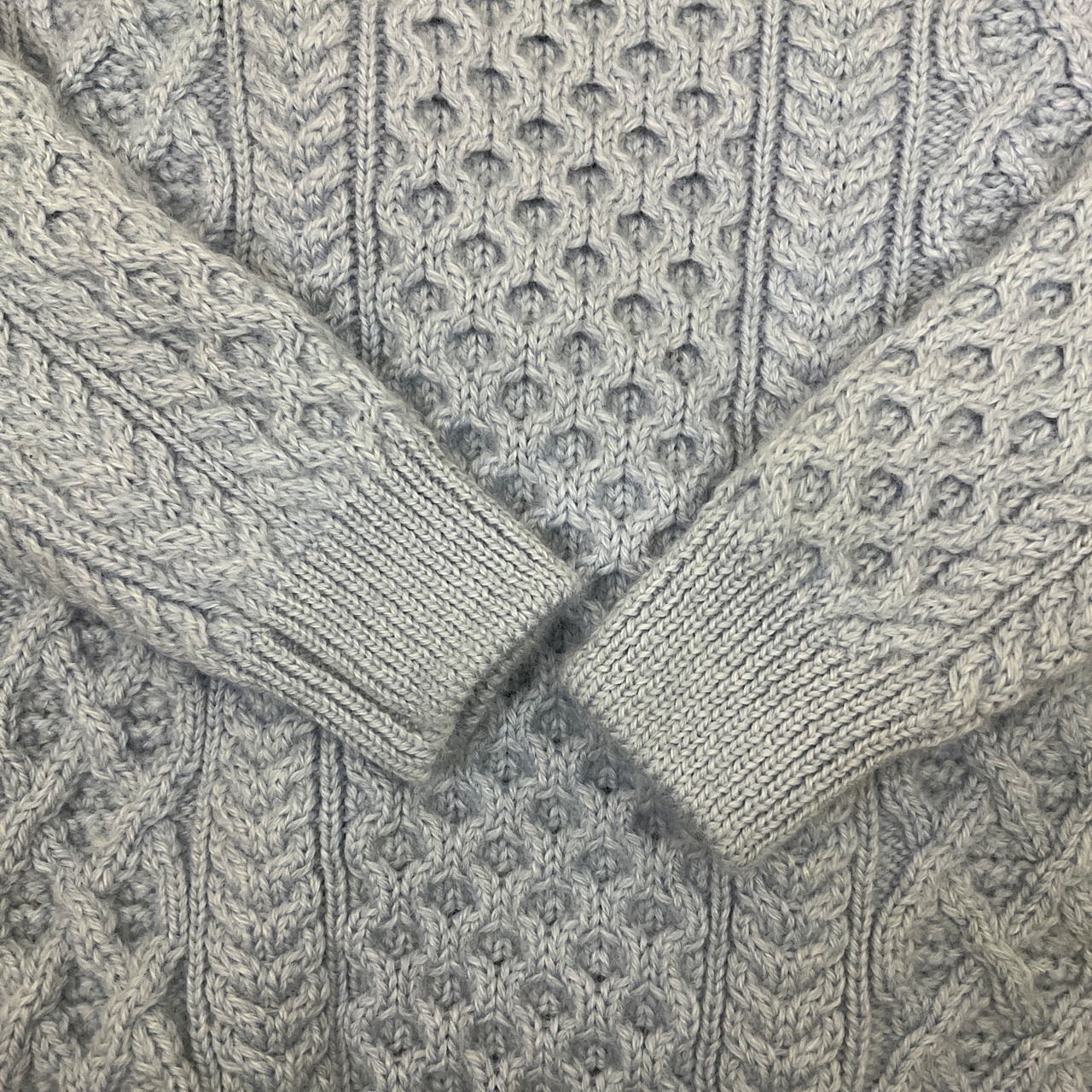 アイルランド製 アランニット フィッシャーマン ウール ニットセーター ライトパープル 古着 【f231108004】