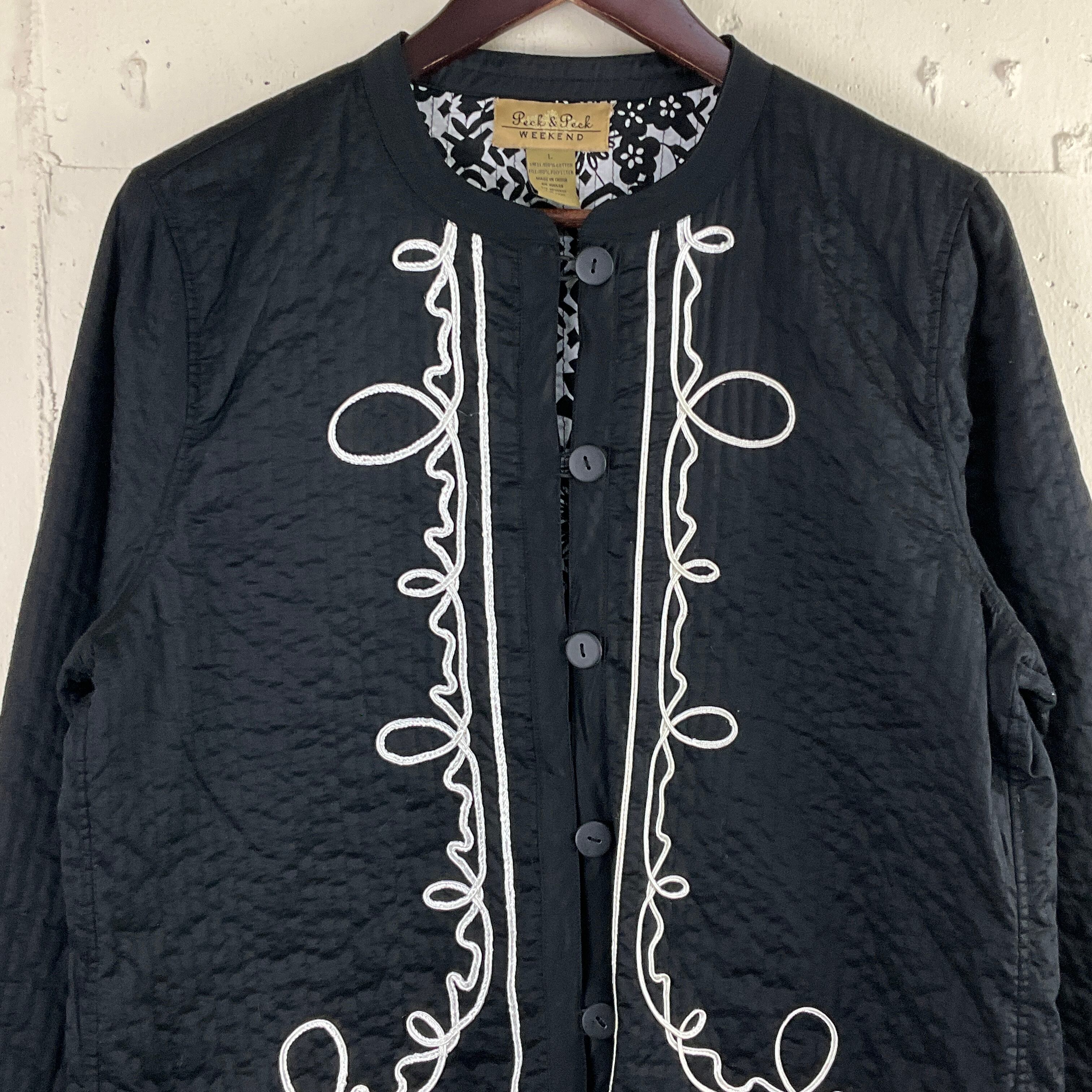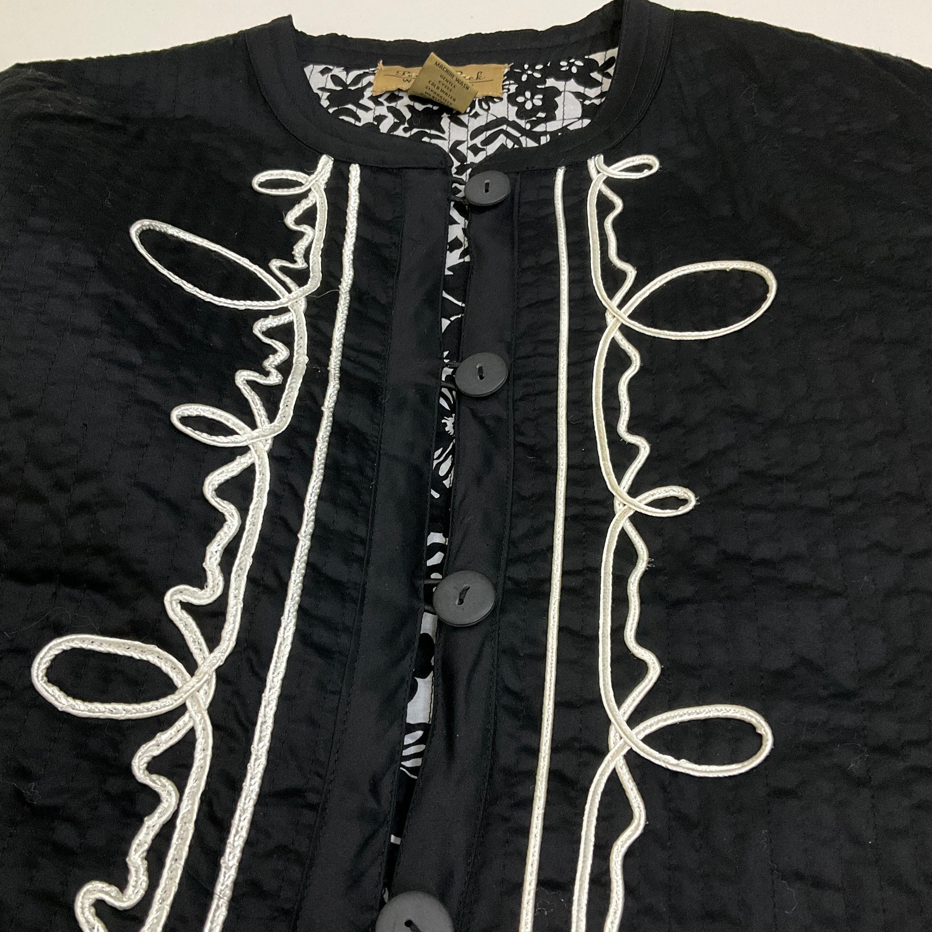 リボン ノーカラー チャイナボタン 中綿ジャケット 古着 ブラック 黒【f231108005】