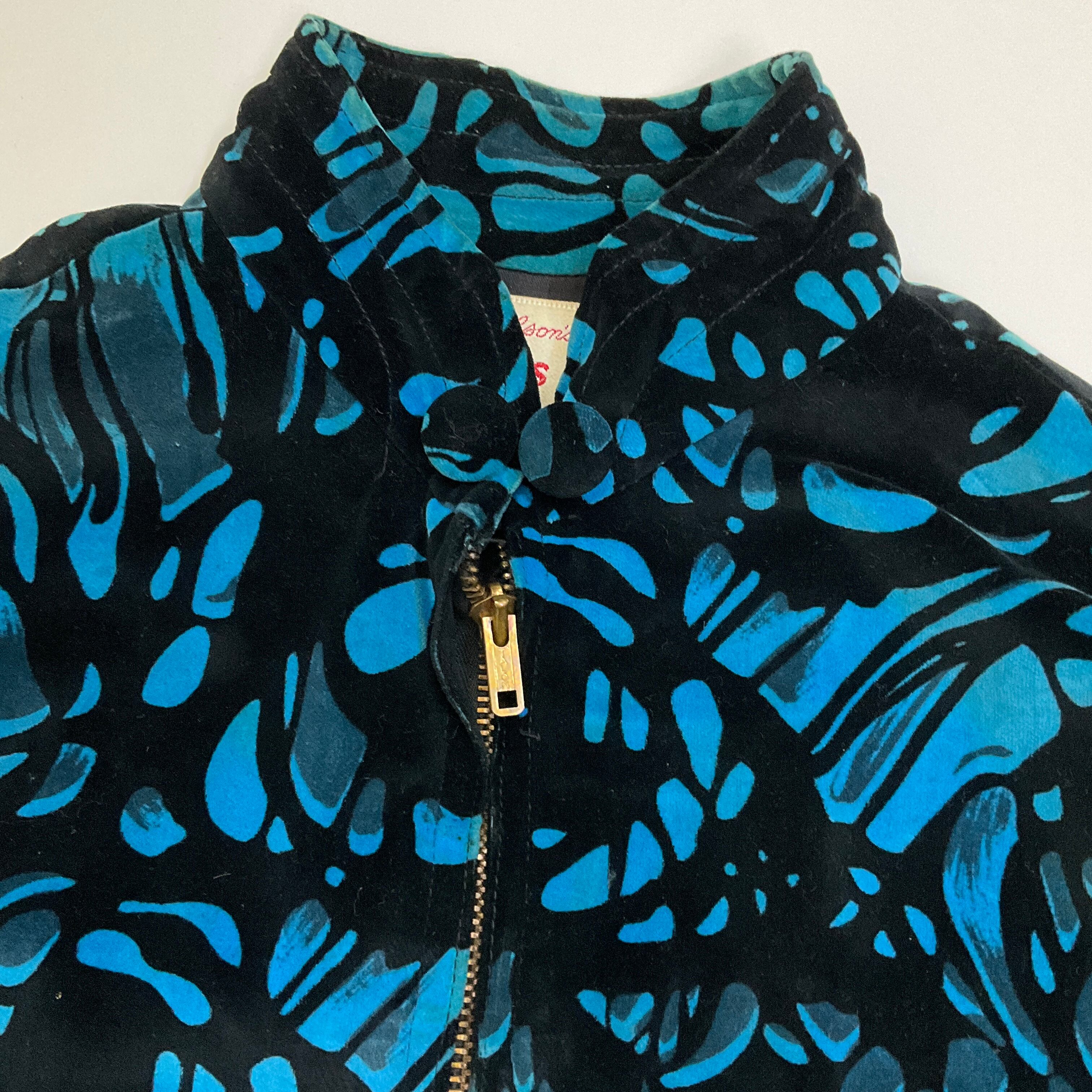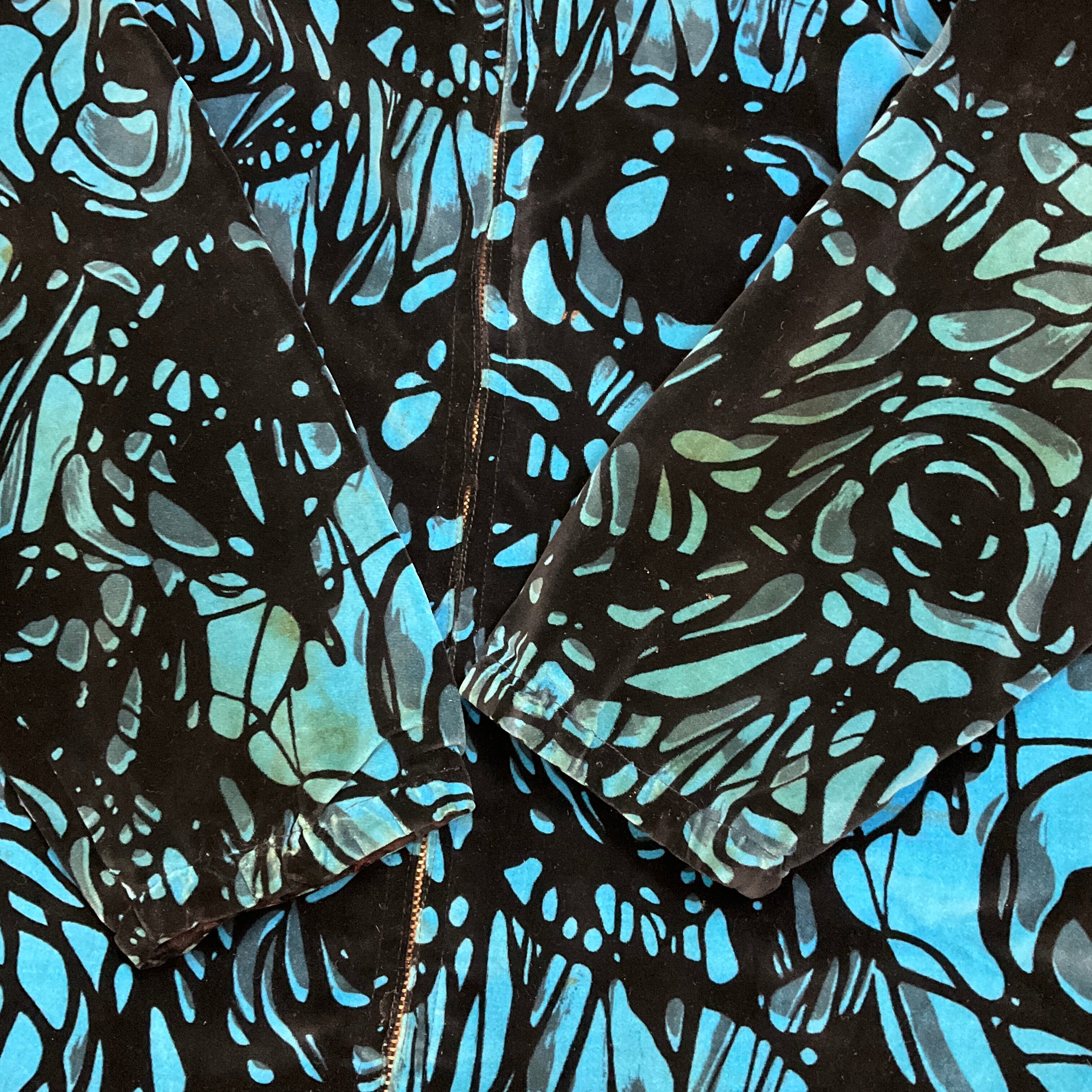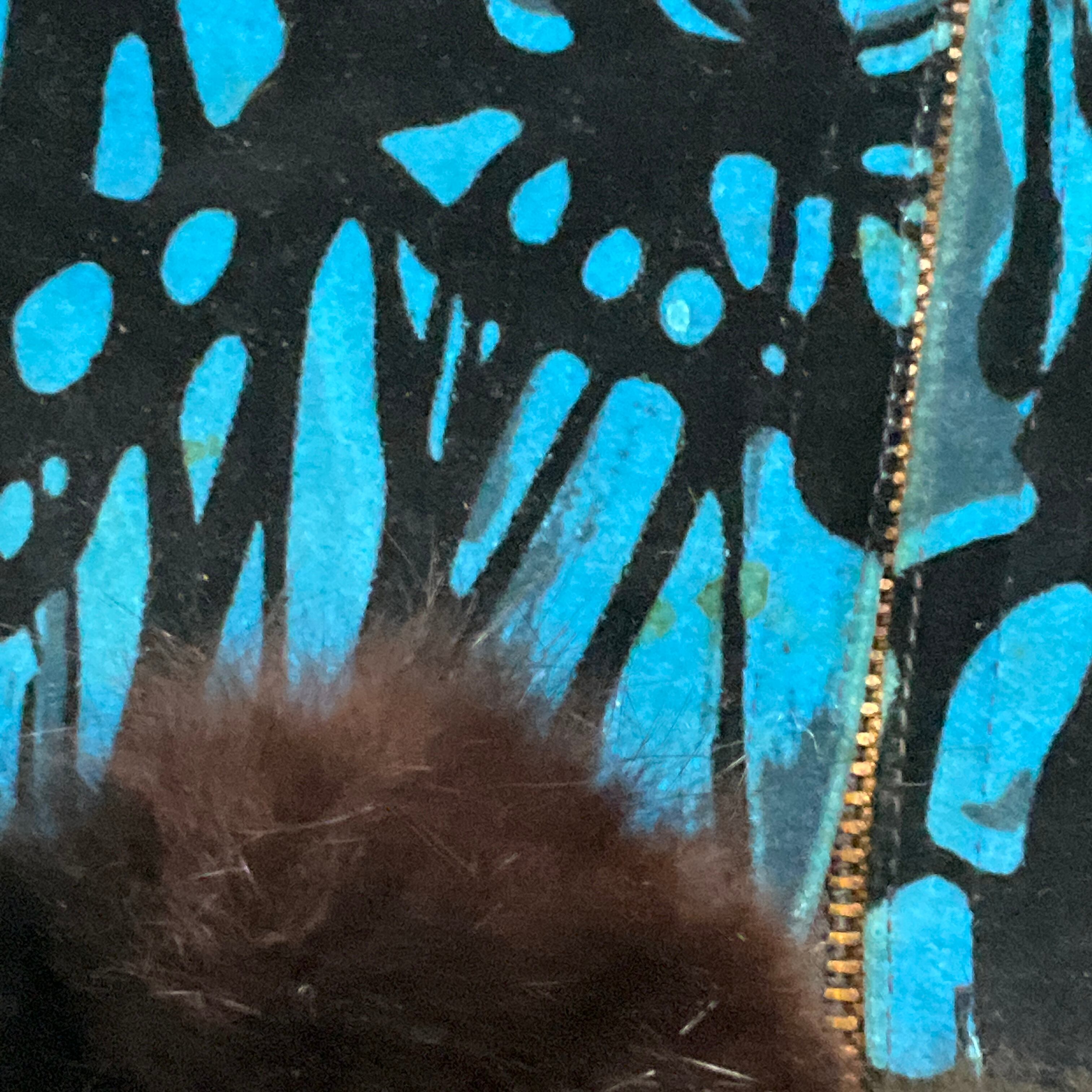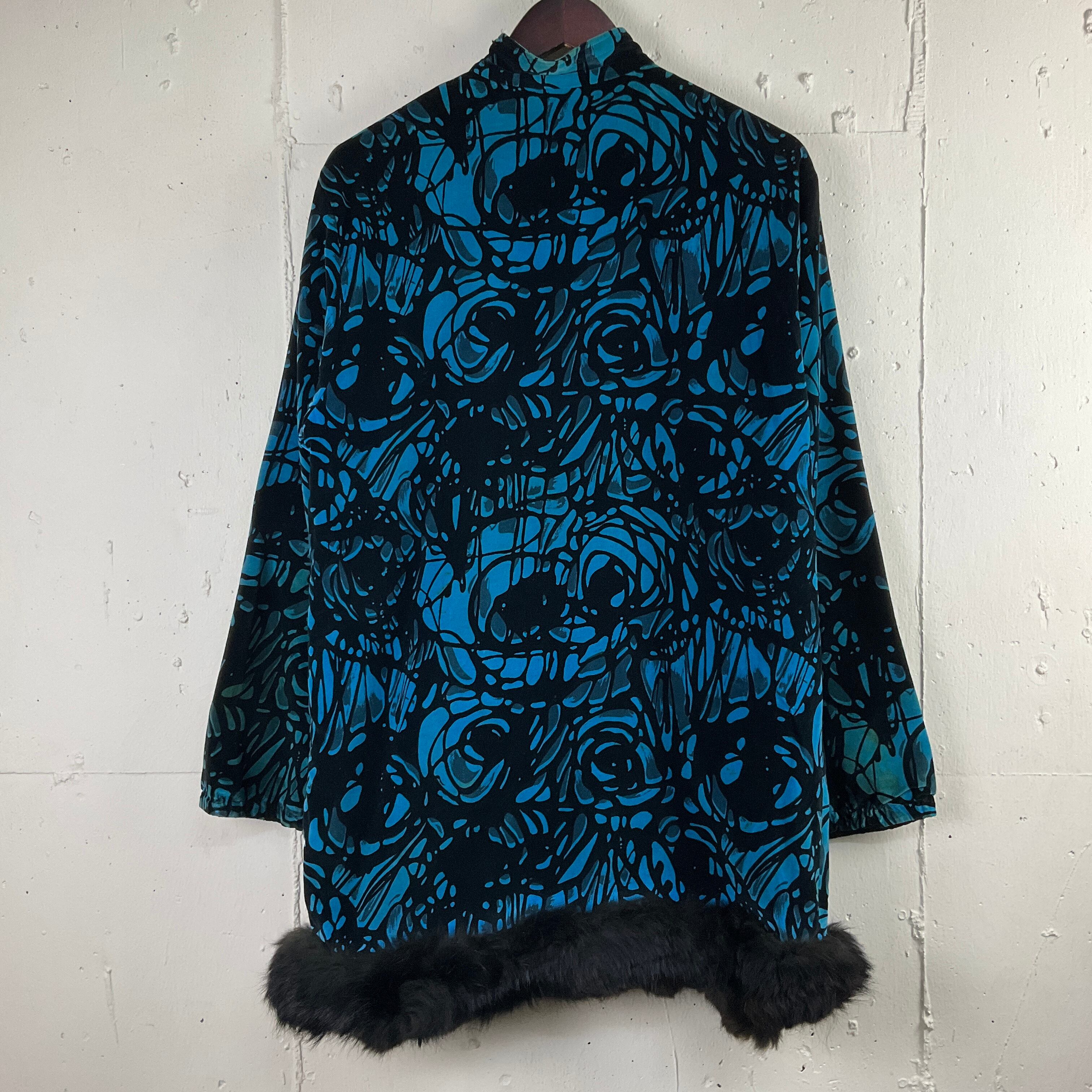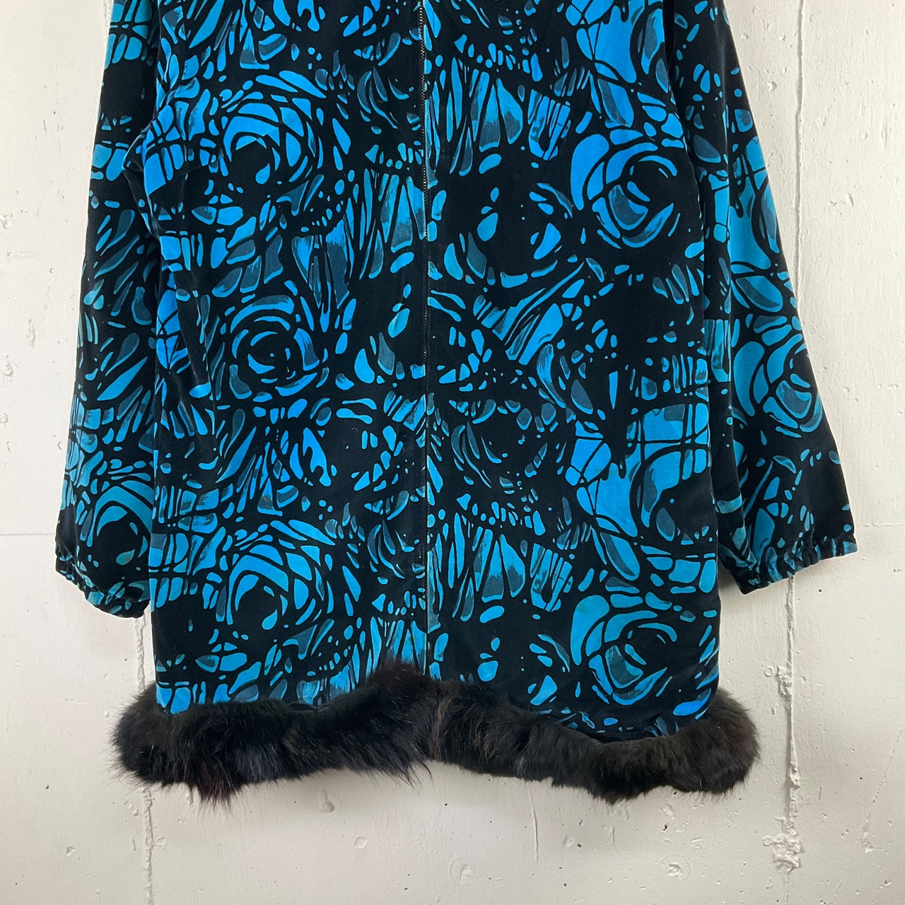 USA製 60年代 60s PARKAS UNLIMITED 総柄 ハーフコート リアルファー TALONジップ ジャケット 古着 ヴィンテージ ビンテージ ブルー×ブラック 【f231108006】