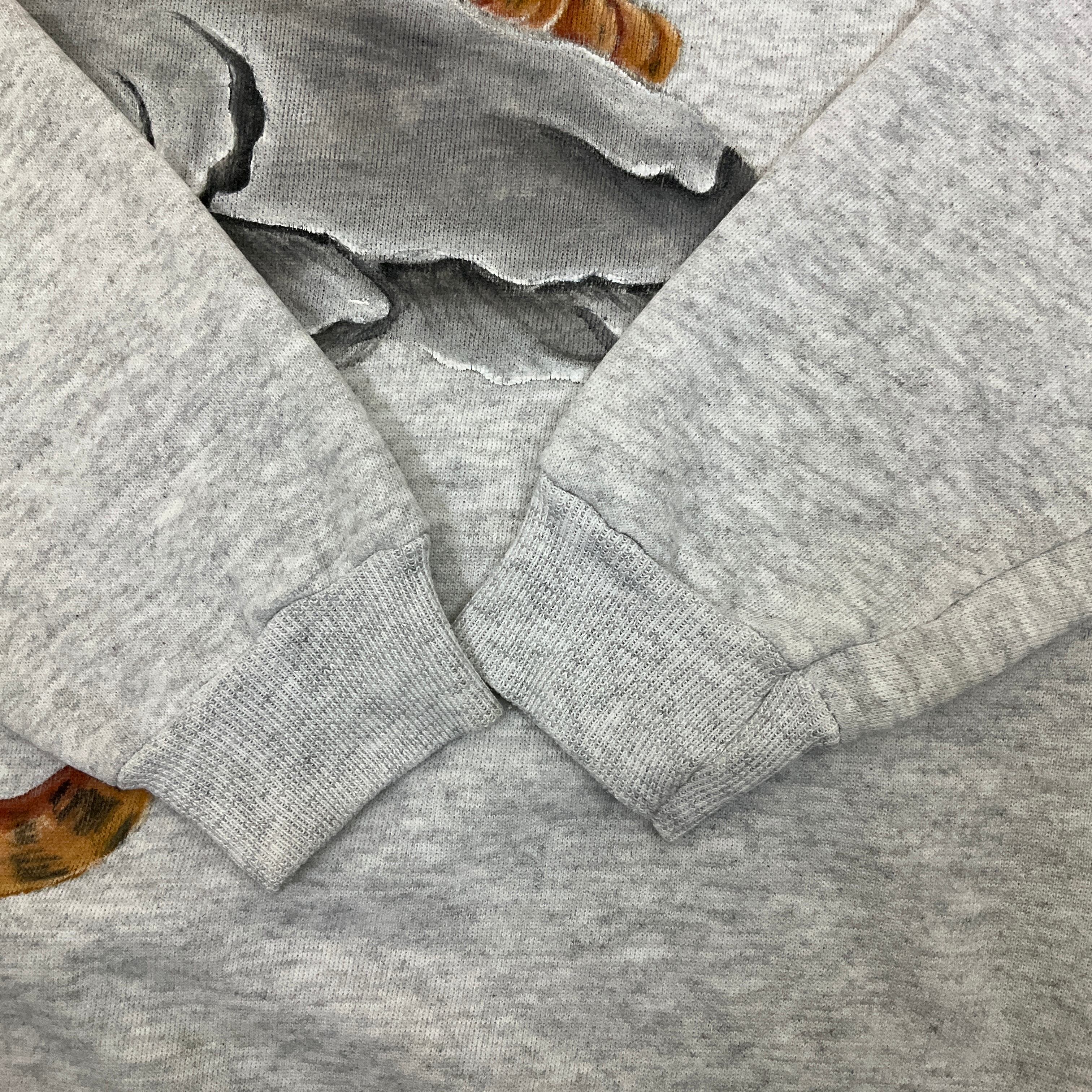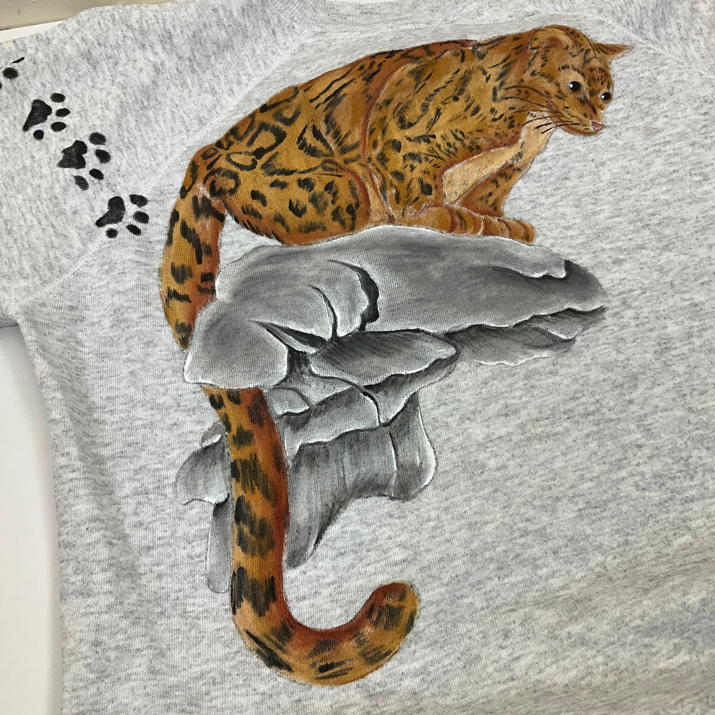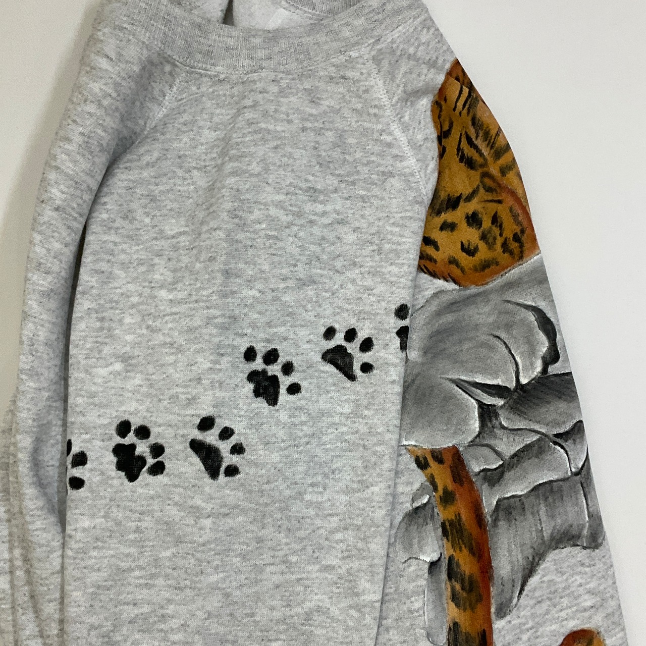 90年代 90s USA製 Hanes ヘインズ ハンドペイントアニマル ヒョウ柄 スウェット トレーナー レディースM 古着 グレー ヴィンテージ ビンテージ【f231110007】