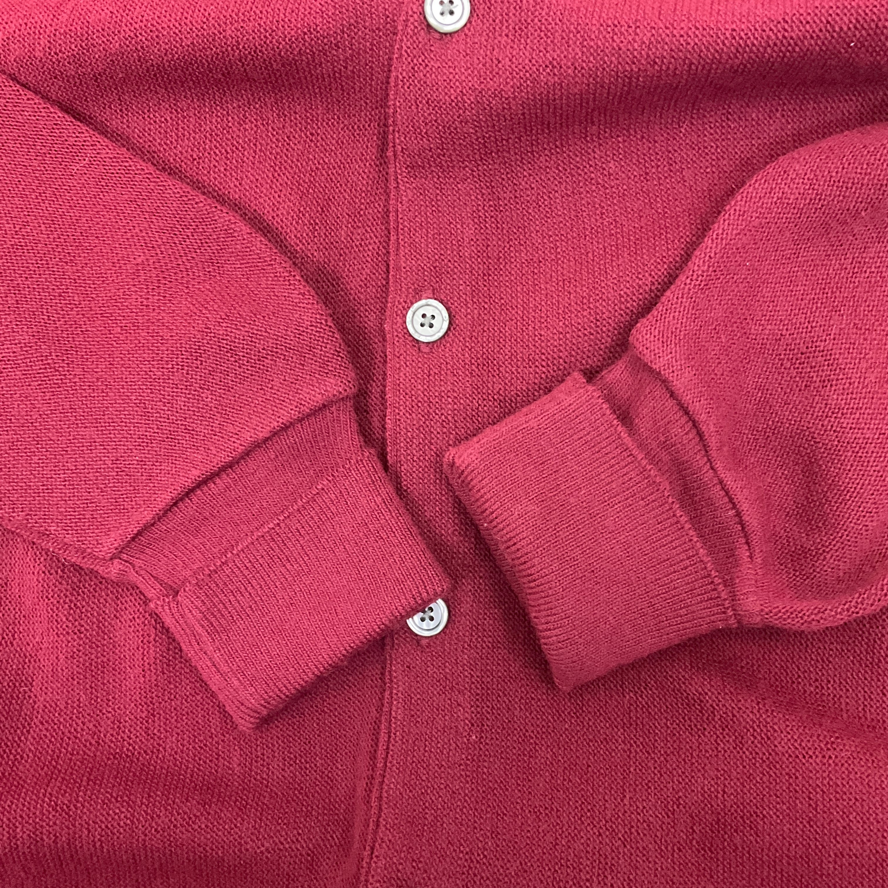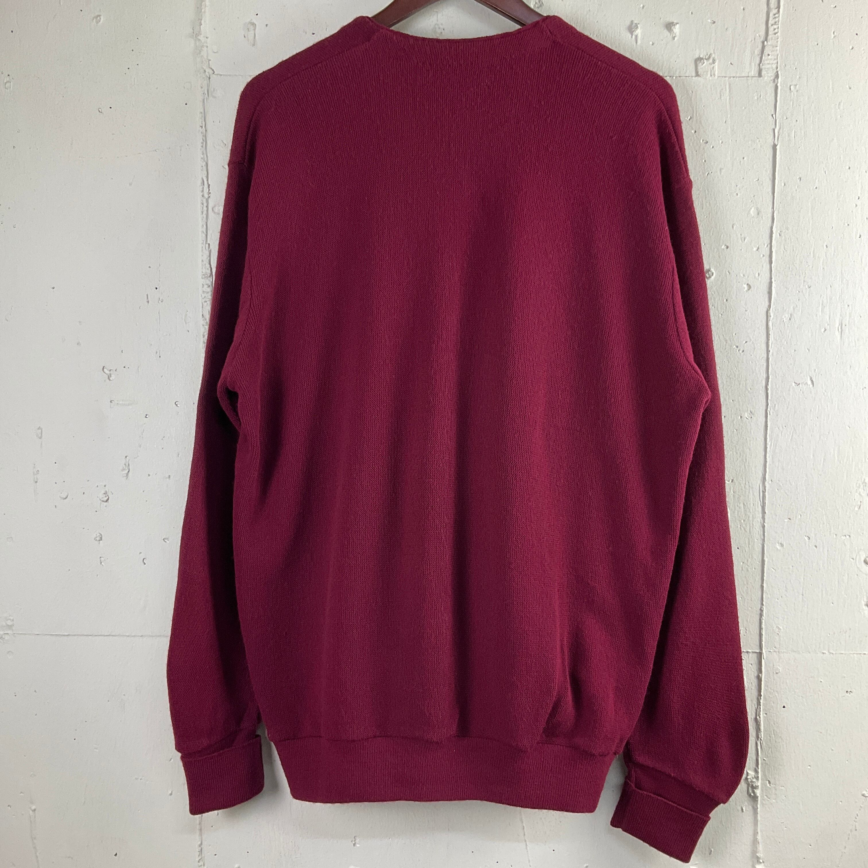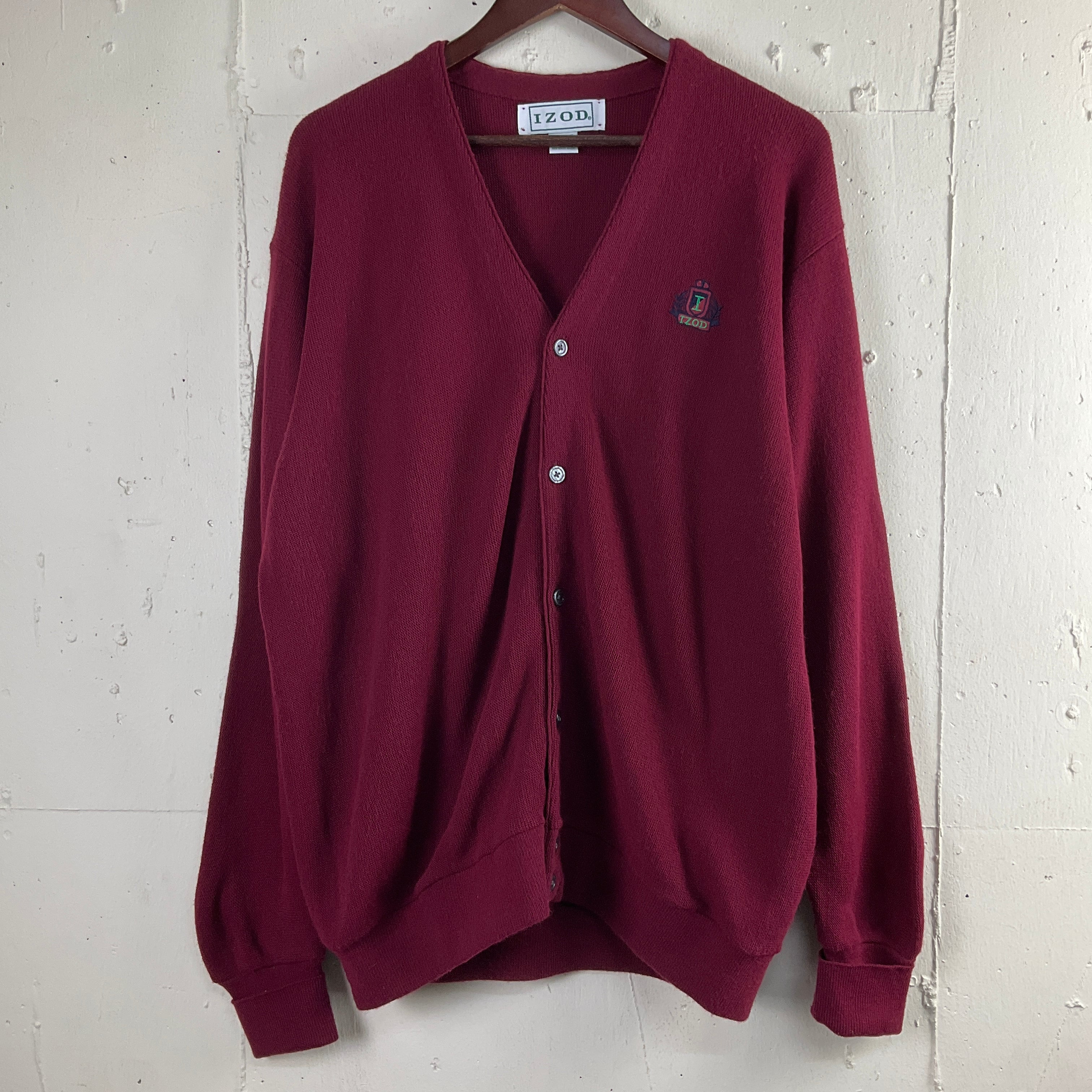 USA製 90年代 90s IZOD LACOSTE ラコステ ワンポイント刺繍 アクリル ニットカーディガン XL 古着 ヴィンテージ ビンテージ バーガンディ ワインレッド 赤【f231110011】