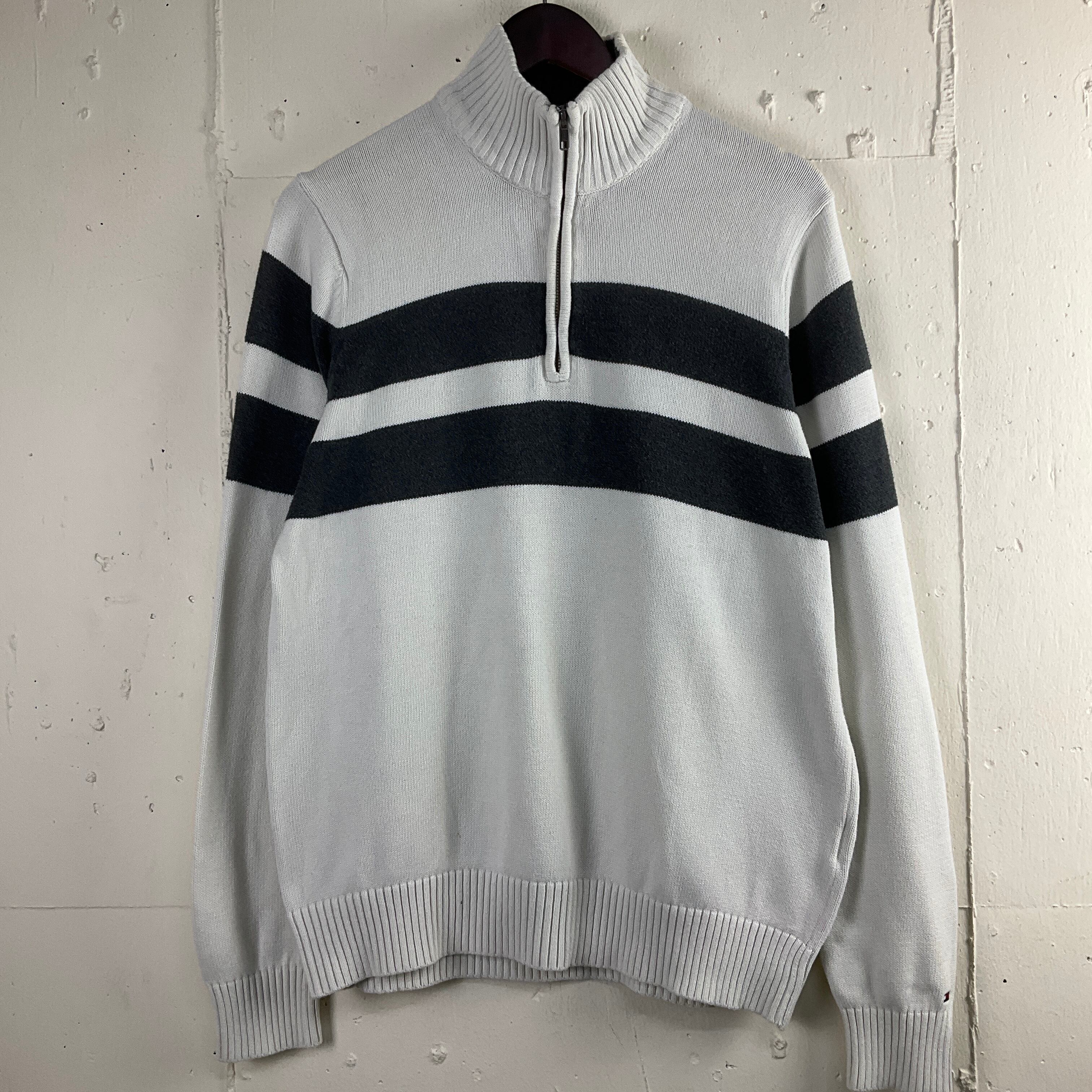 TOMMY HILFIGERトミーヒルフィガー ハーフジップ コットン ニット セーター ホワイト 白 メンズM 古着 【f231110013】