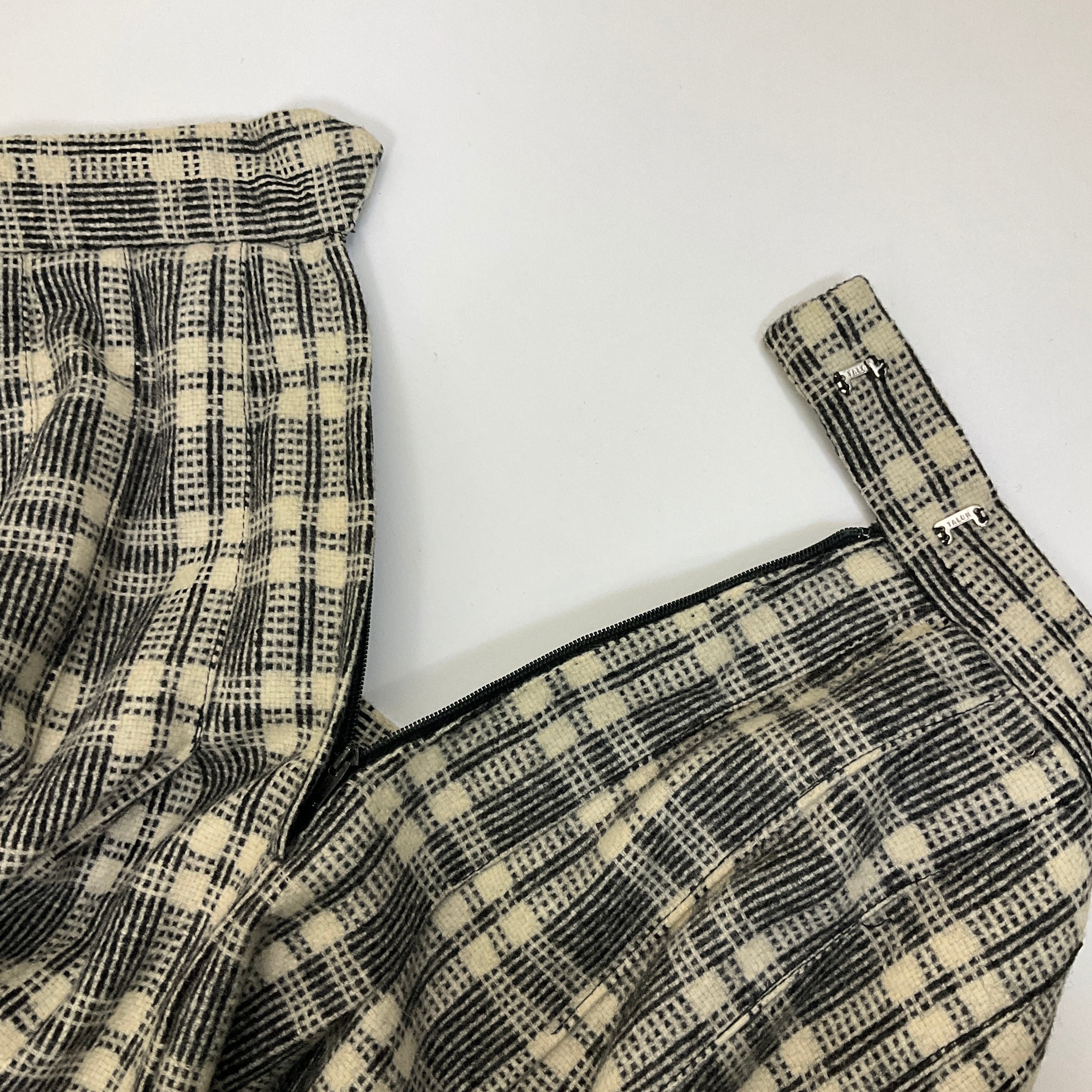 70年代 70s EVAN-PICONE チェック プリーツ ウール ロング スカートホワイト×ブラック 白 黒 古着【f231110017】