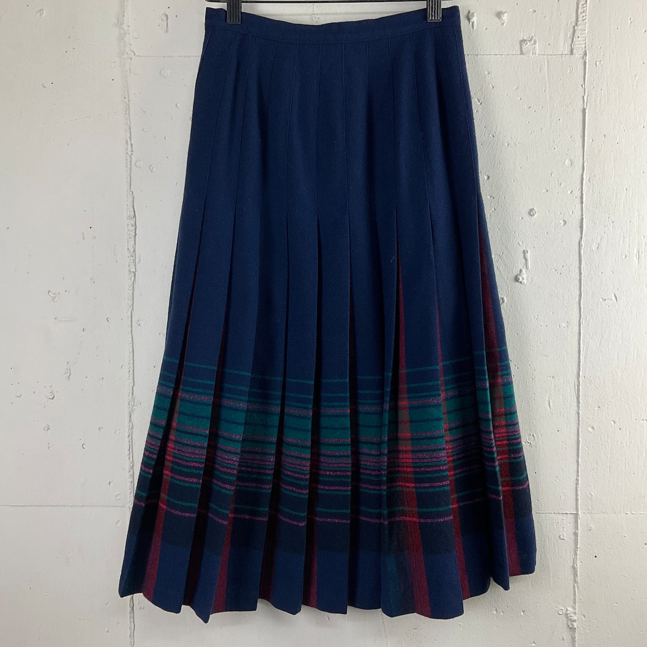 USA製 70年代 70s Pendleton ペンドルトン チェック プリーツ ウール ロング スカート ネイビー×レッド×グリーン 古着 紺 ビンテージ ヴィンテージ【f231110018】