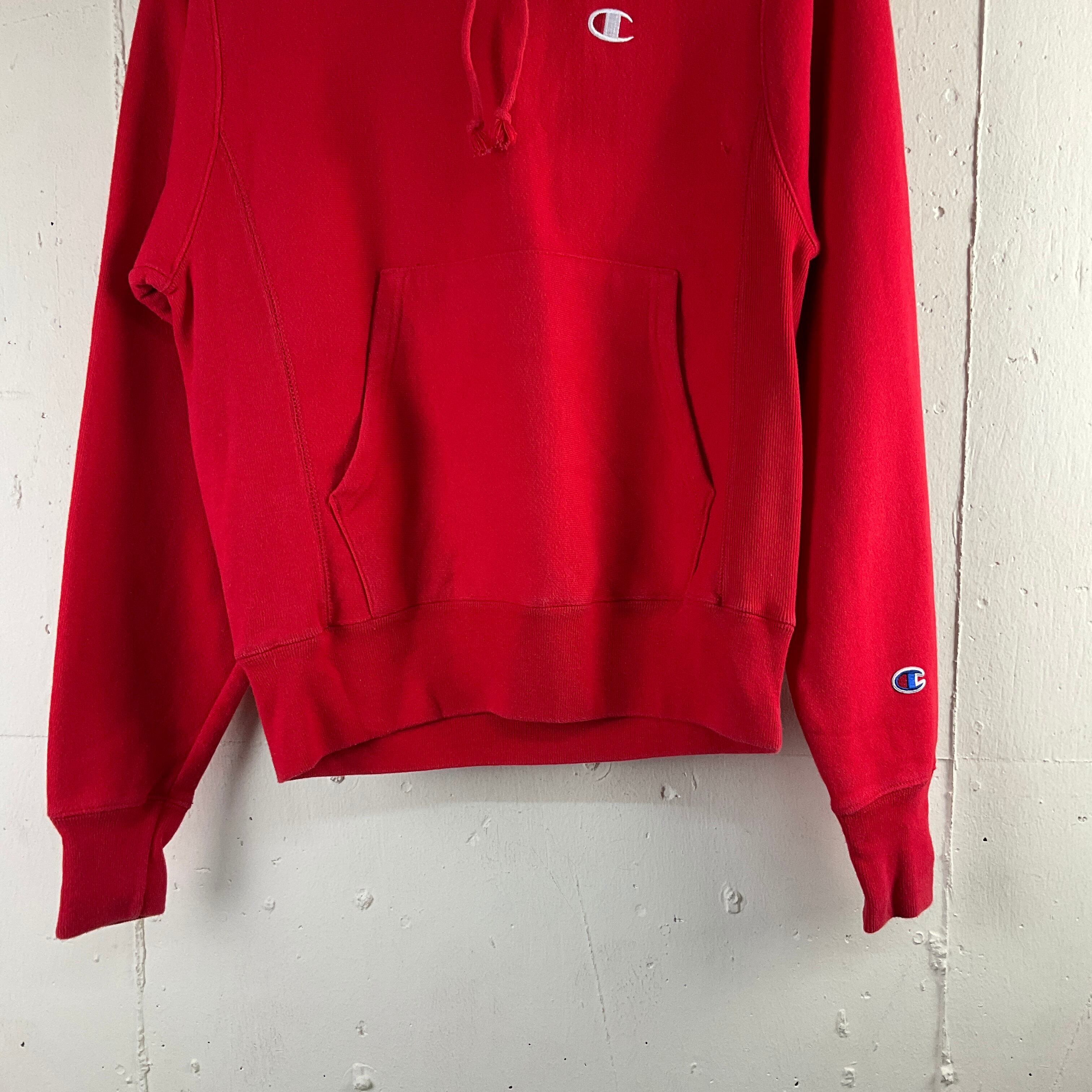 Champion チャンピオン リバースウィーブ REVERSE WEAVE スウェットパーカー フーディ 古着 ワンポイントロゴ刺繍 レッド 赤【f231113013】