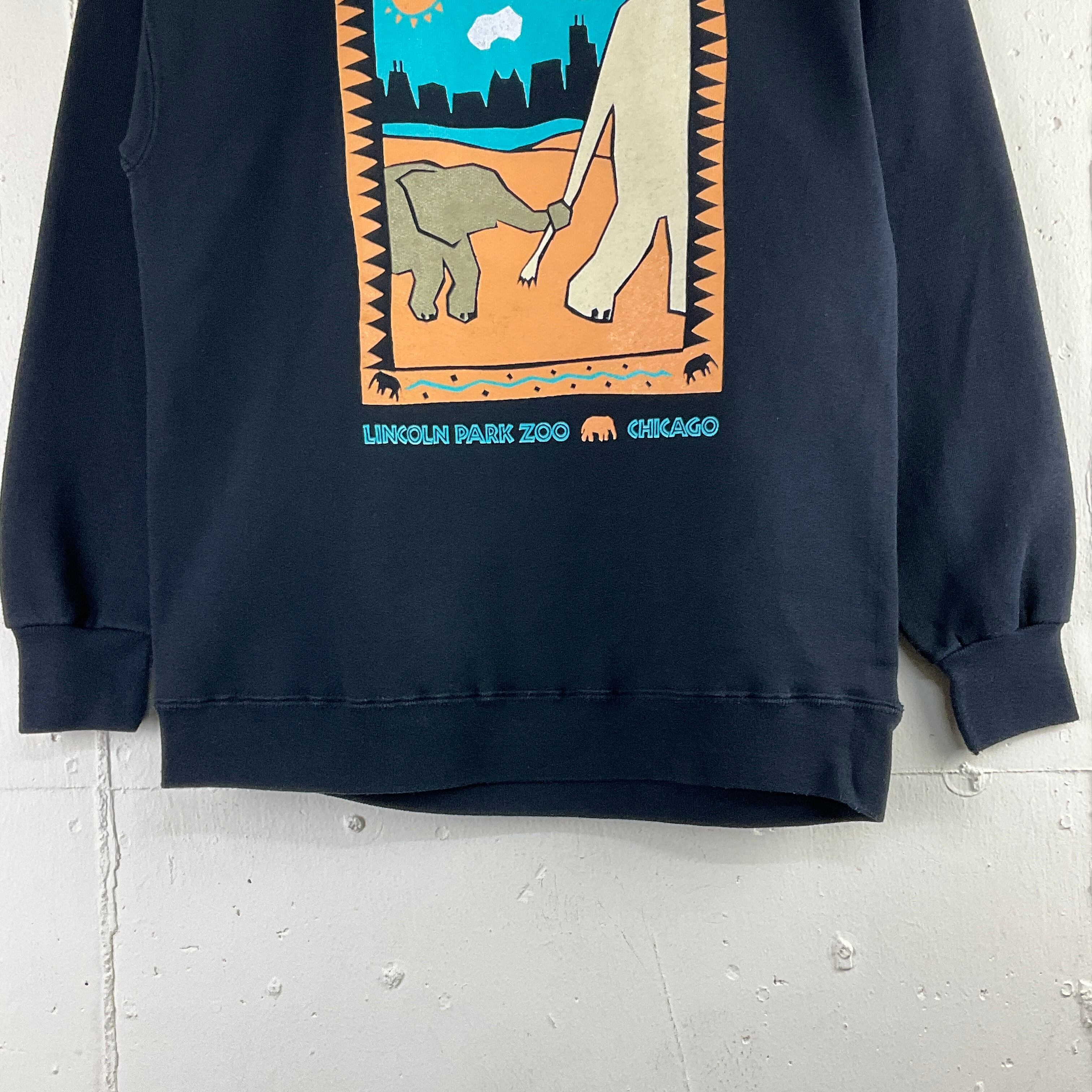 90s 90年代 USA製 ゾウ 象 アニマル アート スウェット トレーナー S 古着 ブラック 黒 ビンテージ ヴィンテージ 【f231113022】
