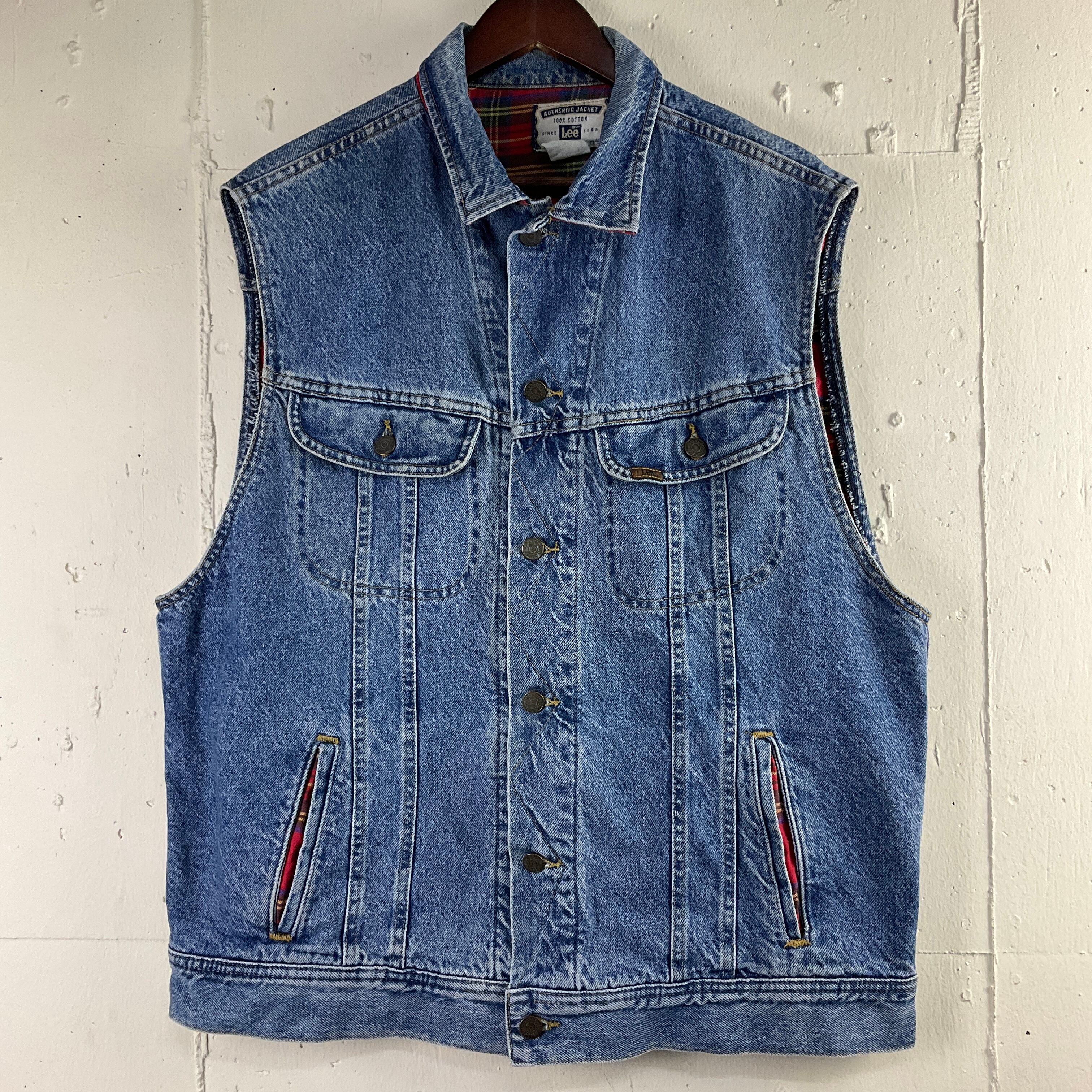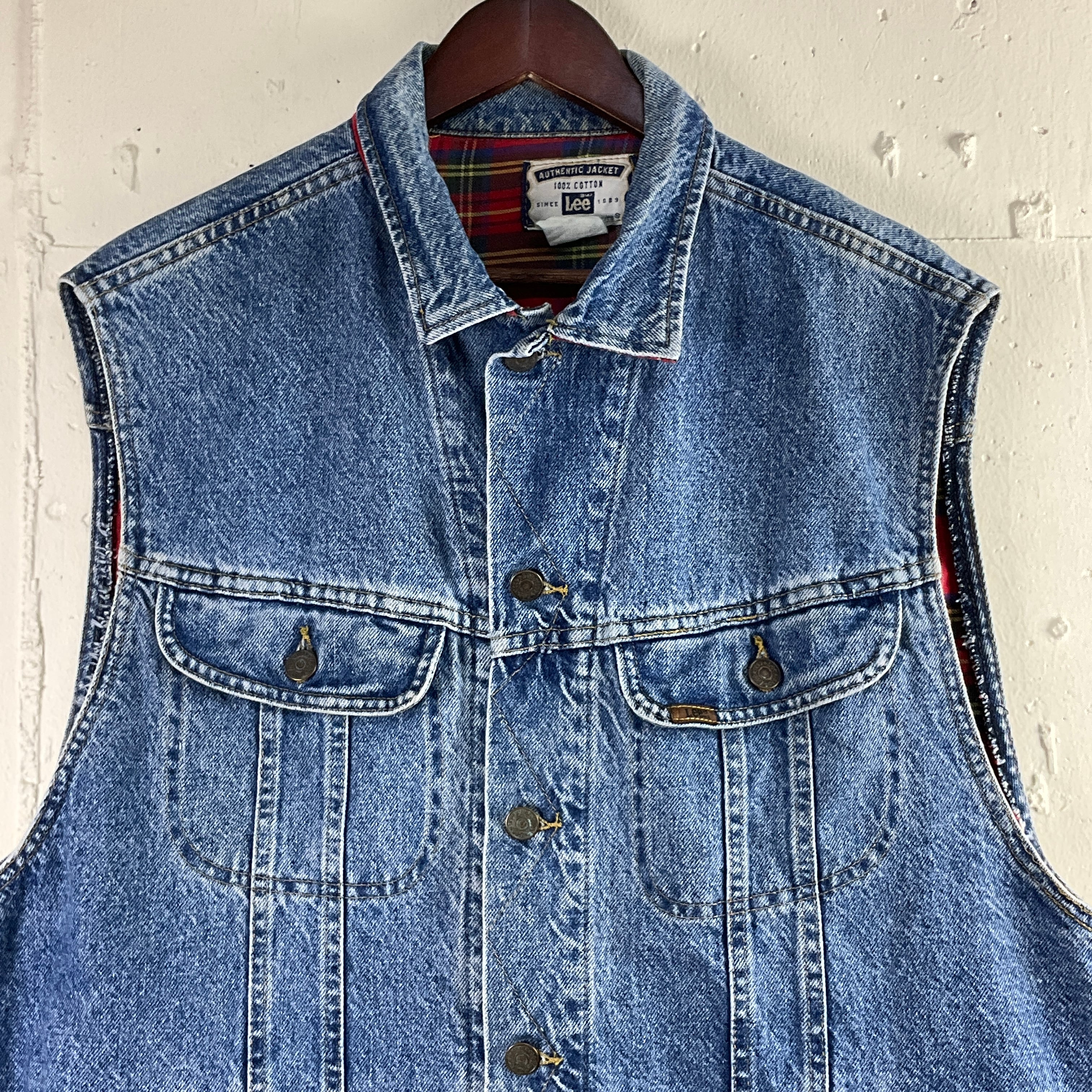 USA製 90年代〜 90s Lee リー AUTHENTIC JACKET デニムベスト 古着 メンズL チェックライナー ヴィンテージ ビンテージ【f231016029】