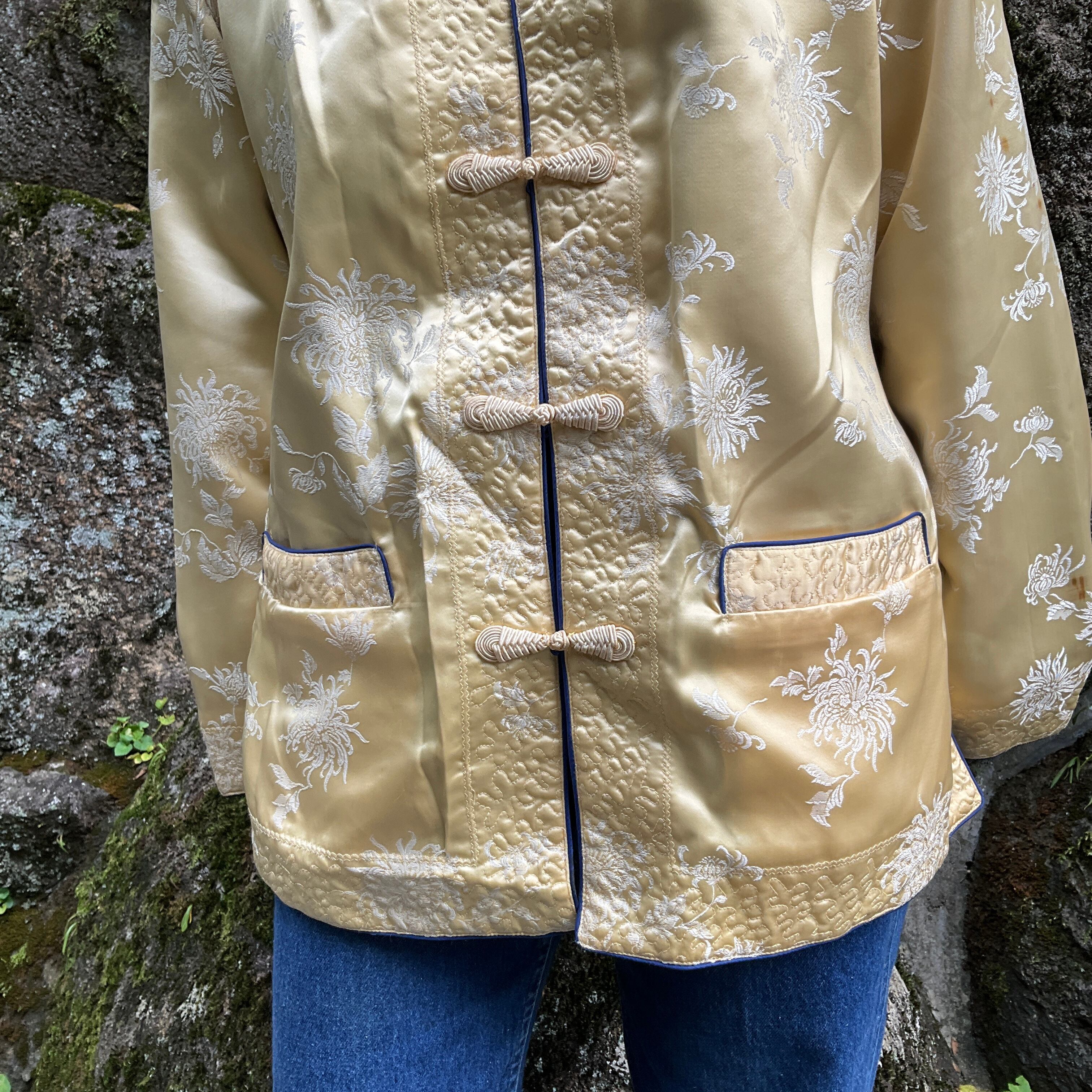 Fortune 総柄 リバーシブル チャイナジャケット 古着 ネイビー×ゴールド【f231117021】