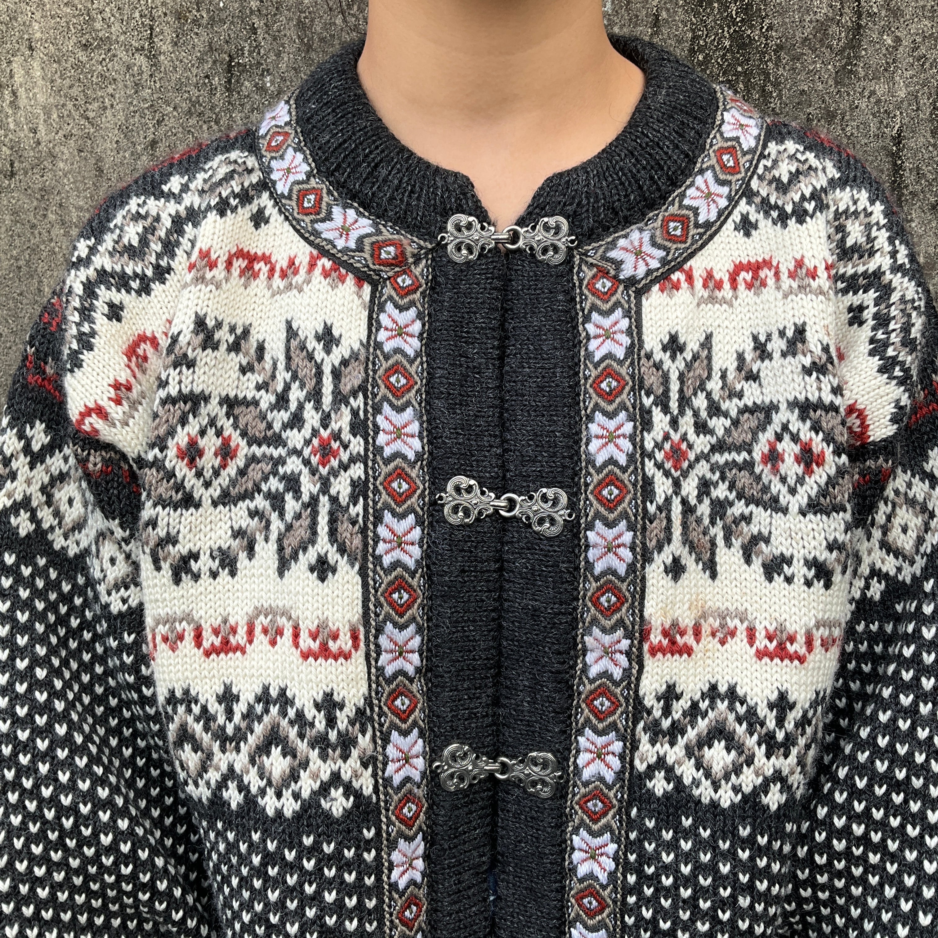 DALE OF NORWAY総柄 ノルディック ウール ニット カーディガン 古着 ノルウェー チロルガーデン【f231117026】