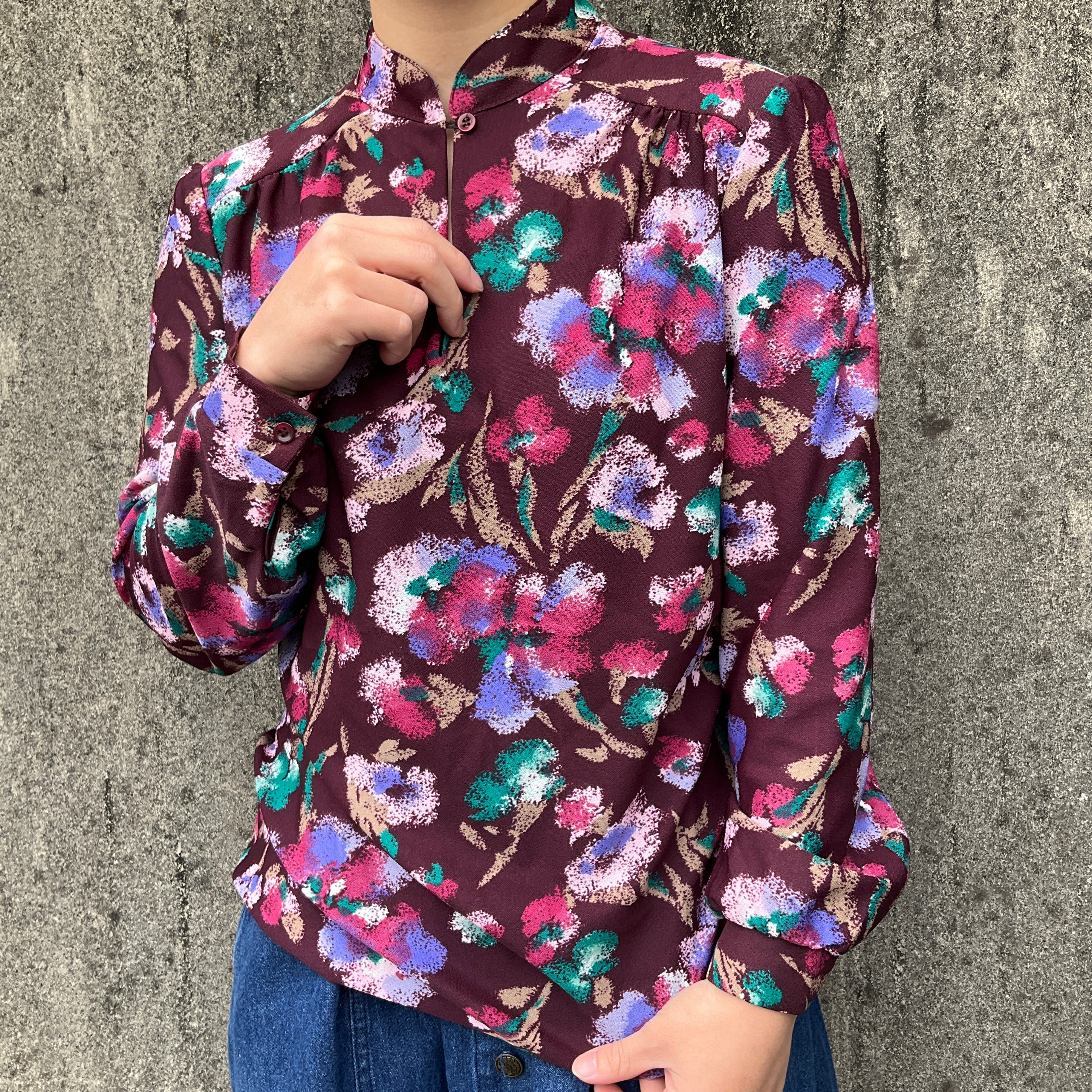70年代 70s eccoday 花柄 ボタニカル 総柄 ポリエステル 長袖シャツ プルオーバー 古着 ヴィンテージ ビンテージ ポリシャツ レディース【f231121004】