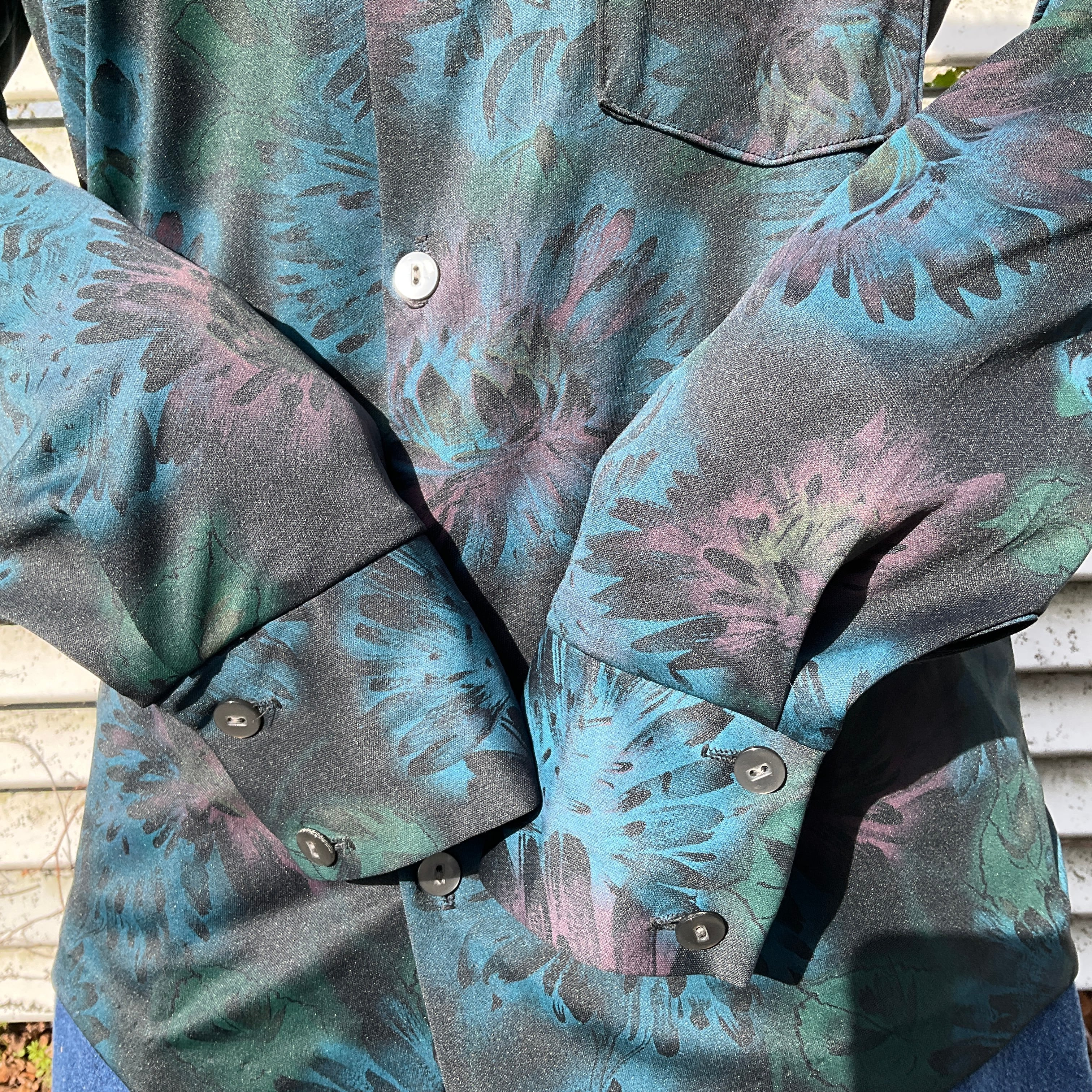 70年代 70s Triumph 花柄 ボタニカル 総柄 ポリエステル 長袖シャツ 開襟 古着 ヴィンテージ ビンテージ ポリシャツ メンズS オープンカラー【f231121009】