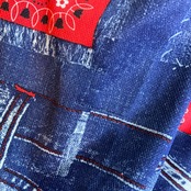 70年代 70s NPC bashions デニム パッチワーク 総柄 ポリエステル 長袖シャツ 古着 ヴィンテージ ビンテージ ポリシャツ レディース【f231121010】