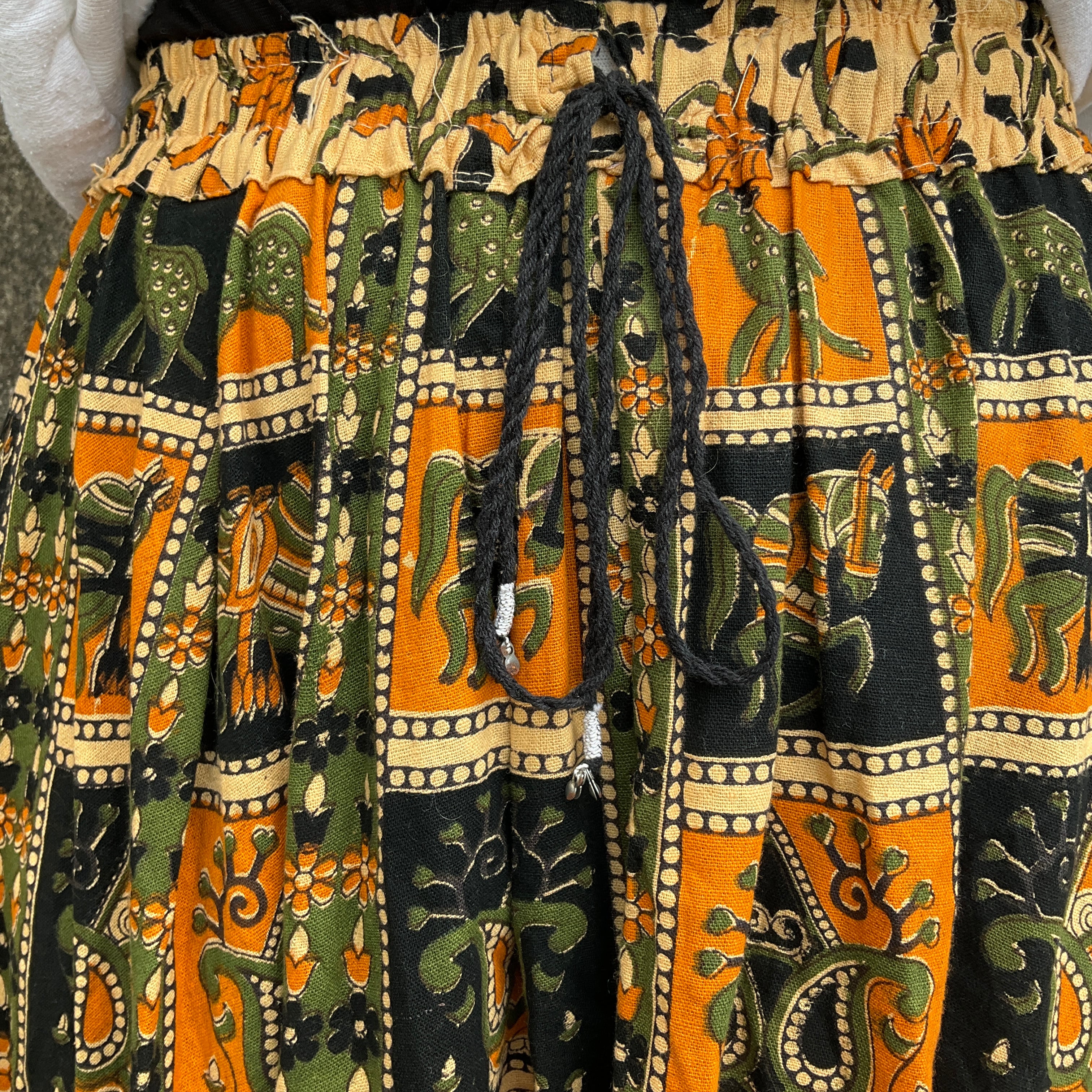 エスニック フレア ロング スカート 総柄 古着 ゾウ アニマル 花柄 人【f231121013】