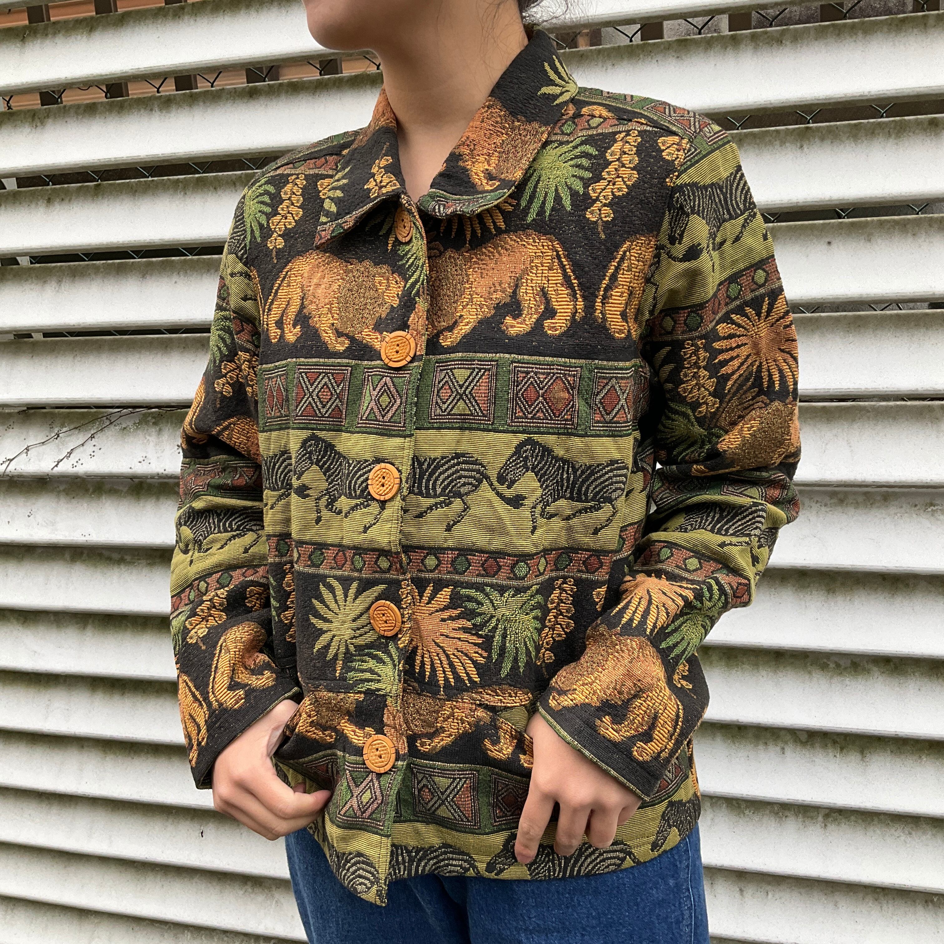 インド製 NEW IDENTITY アニマル 総柄 ゴブラン ジャガードジャケット レディース 古着 【f231121019】