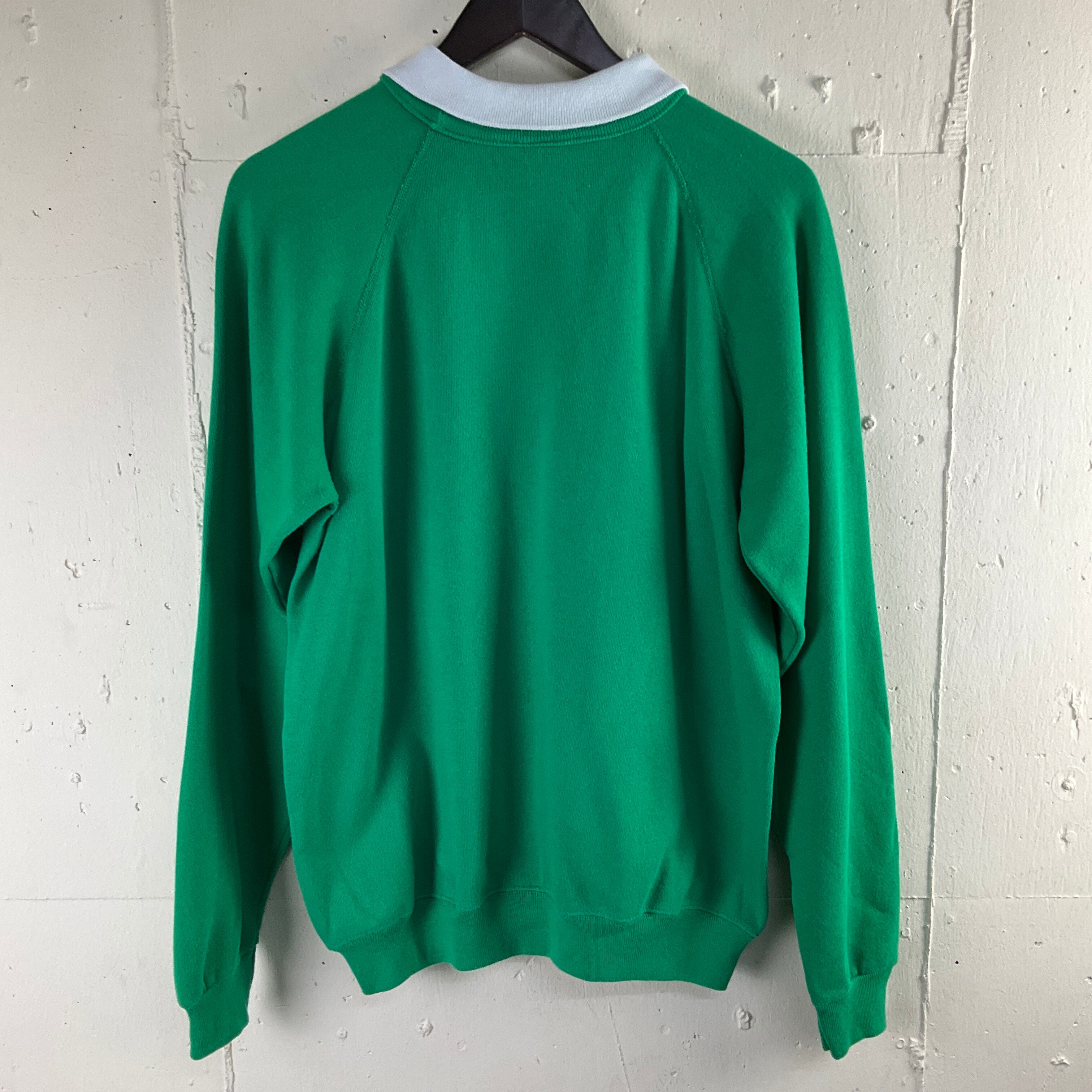 80年代 80s USA製 Hanes ヘインズ クローバー 襟付き スウェット トレーナー L 古着 グリーン 緑 ヴィンテージ ビンテージ【f231122010】