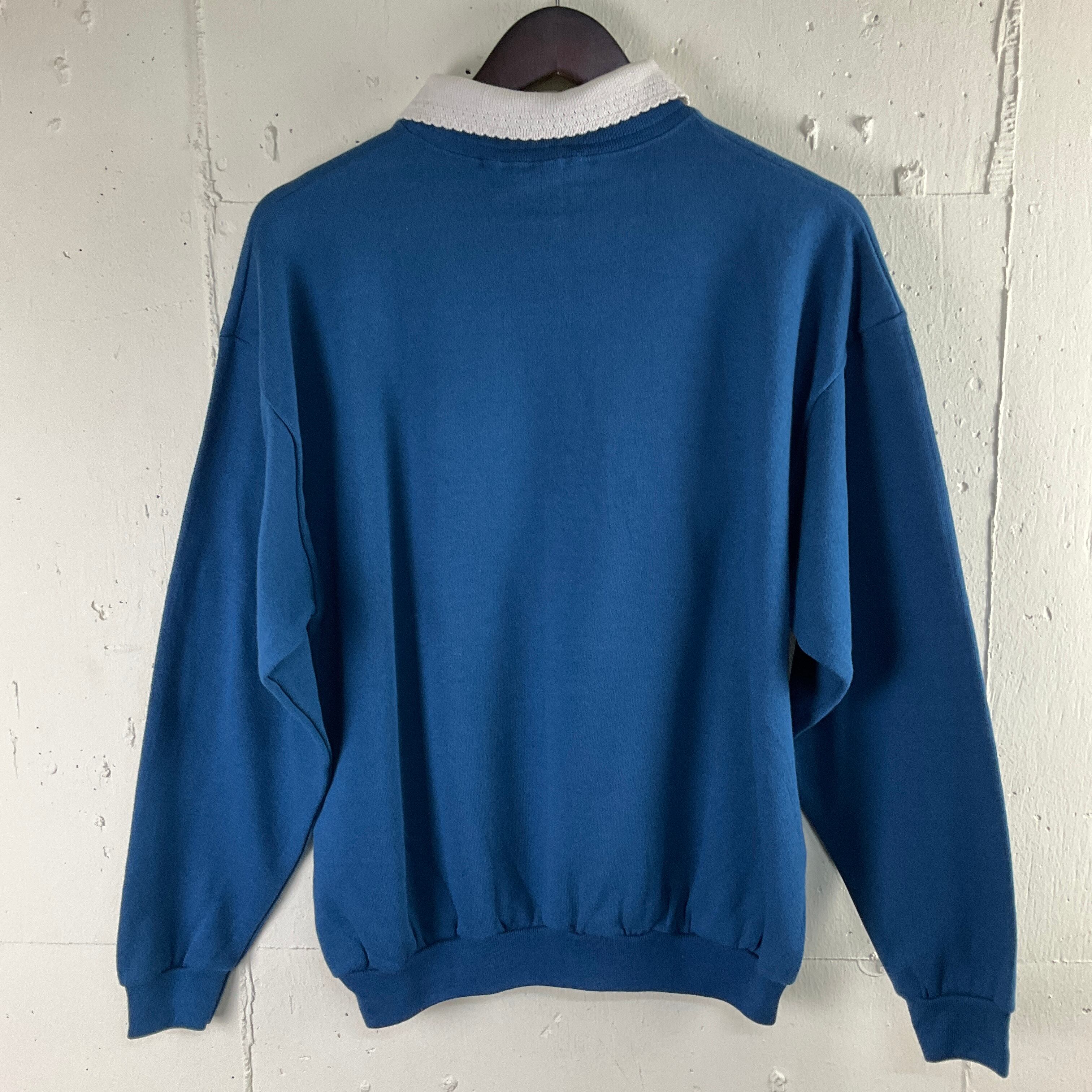 90年代 90s USA製 top stitch くま アニマル 襟付き スウェット トレーナー M 古着 ネイビー 紺 ヴィンテージ ビンテージ【f231122012】