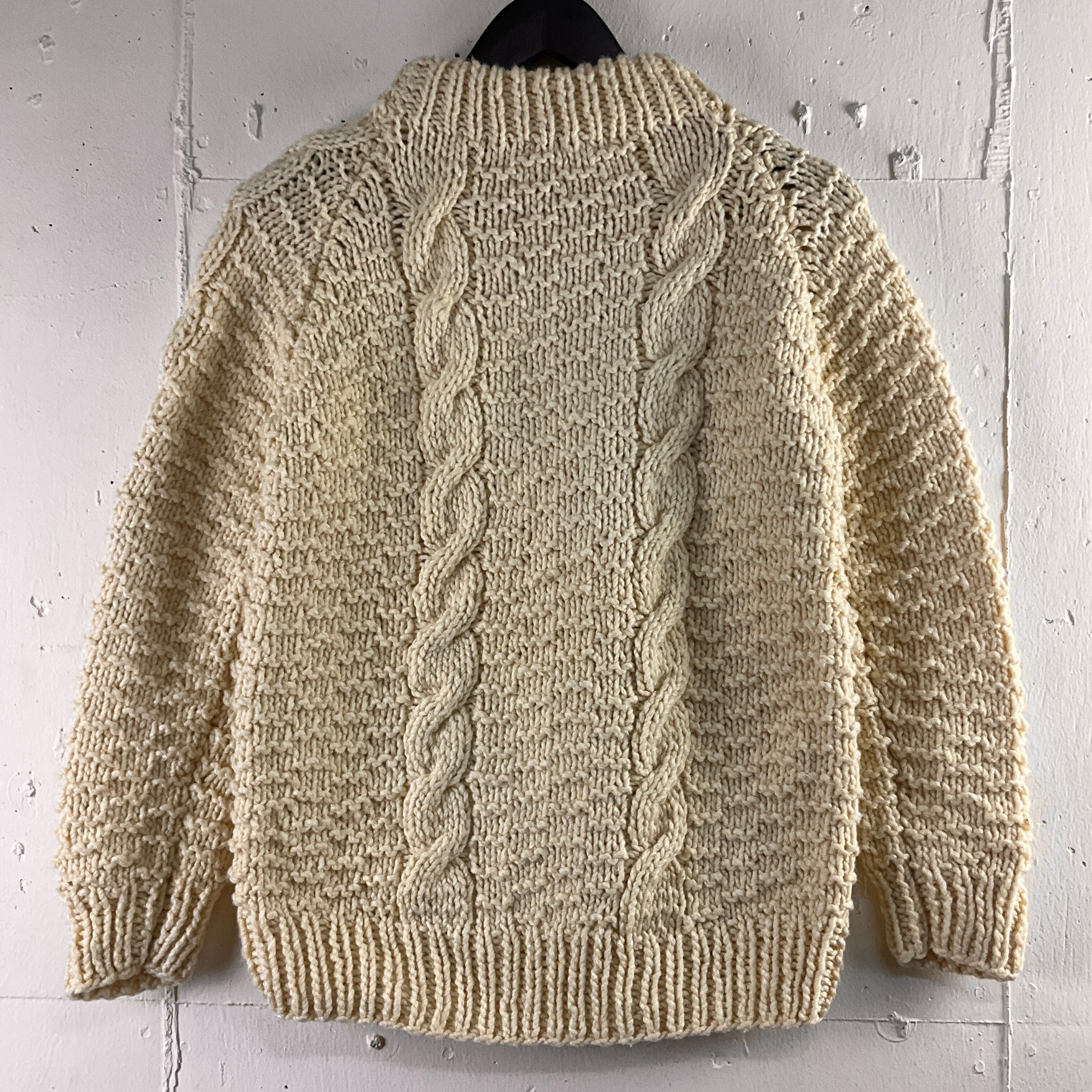 ハイネック フィッシャーマン ウール ニットセーター 古着 オフホワイト 白【f231127011】